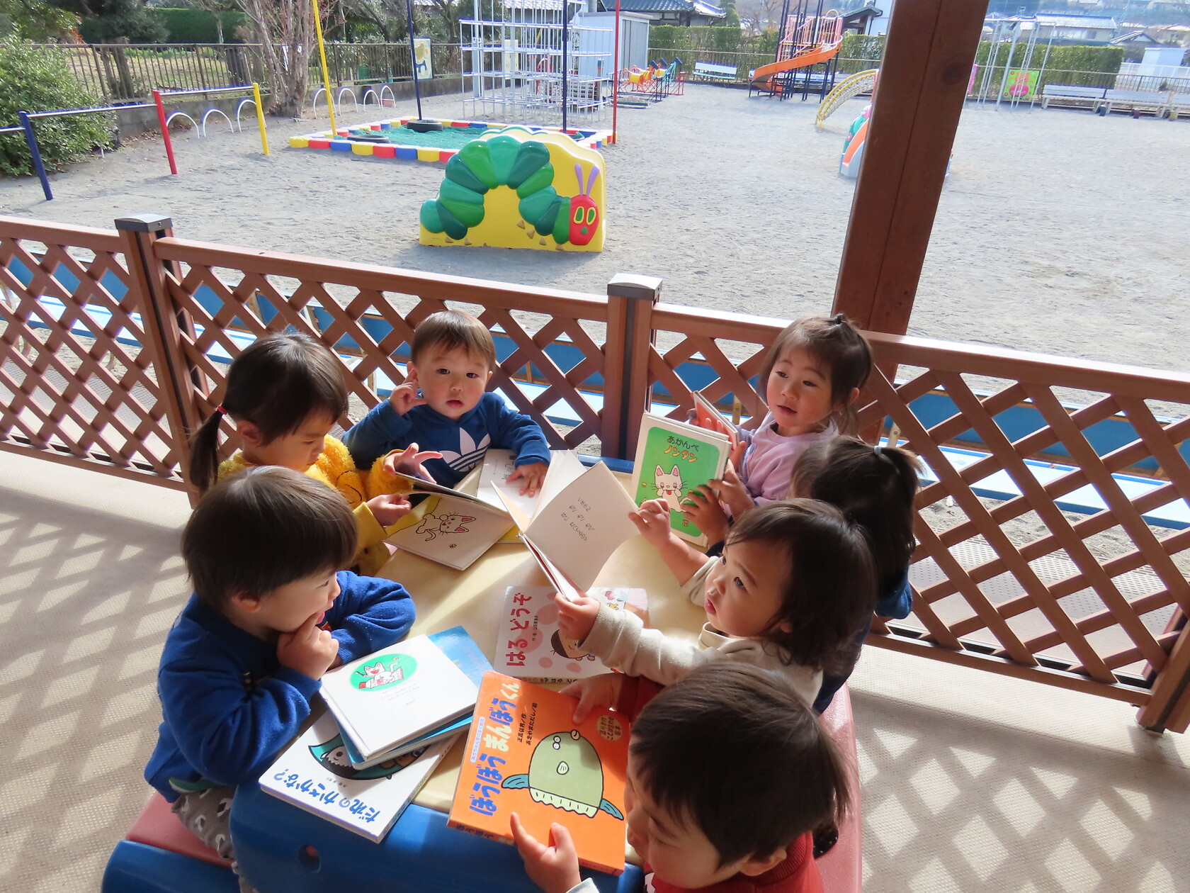 今日は、風もなく気持ちのいい日でしたね☀お腹いっぱい給食を食べた後にテラスで日なたぼっこ😊✨とてもカワイイ写真が撮れました📸