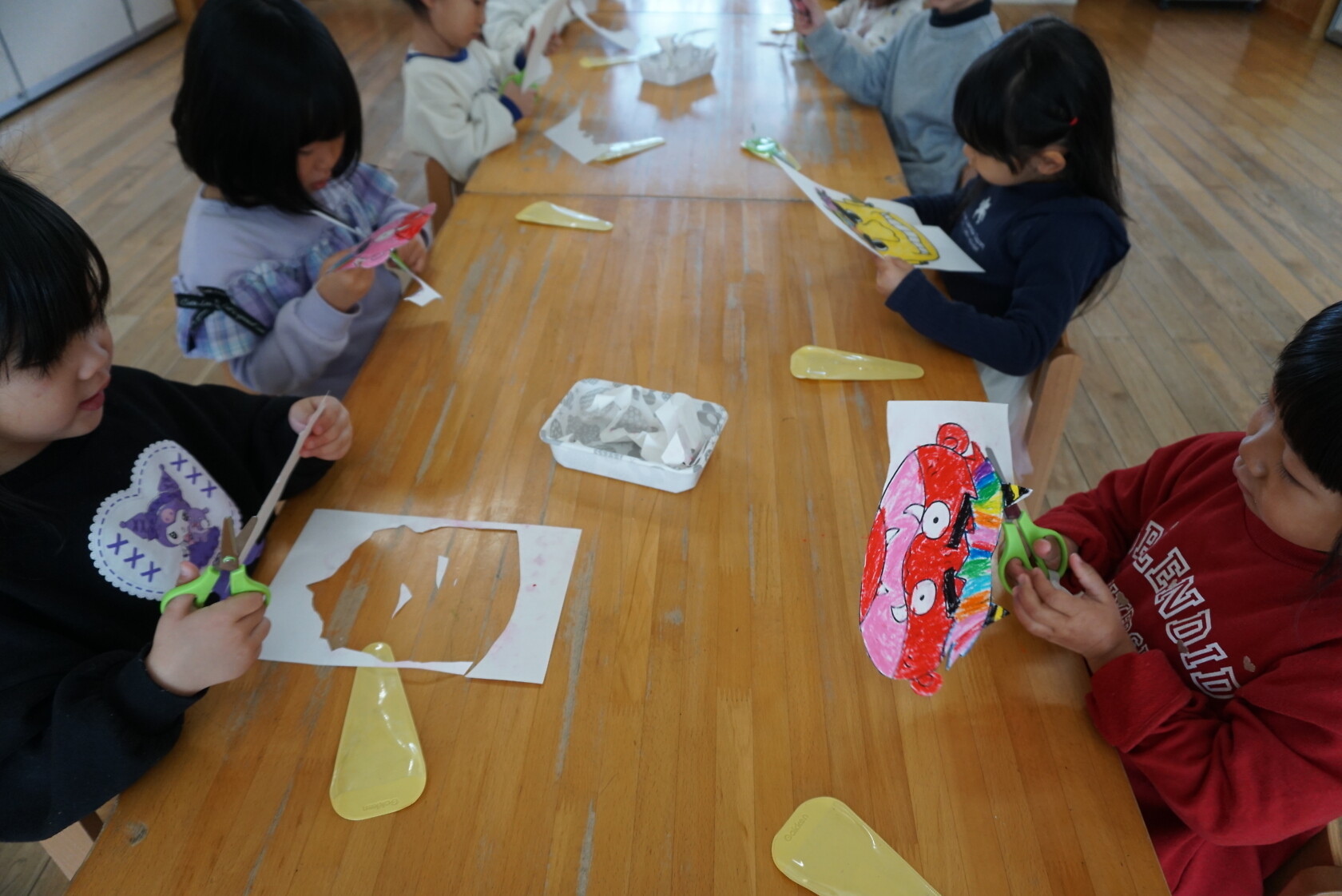 今日は豆まきの時に着ける鬼のお面を切りました✂ 昨日顔や髪の毛を好きな色で塗りました😊髪の毛が虹色の子もいれば、顔が赤色や青色、黄色と個性が出 […]