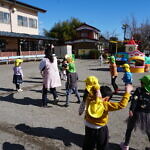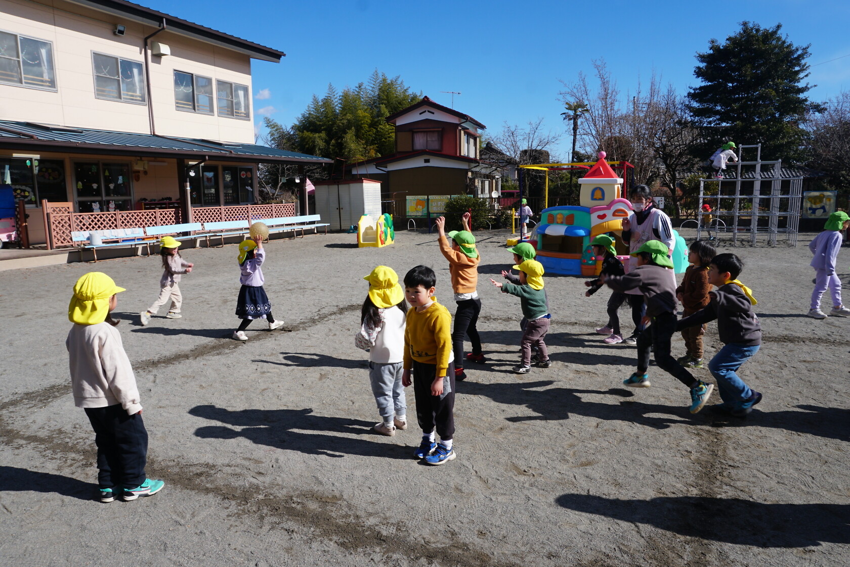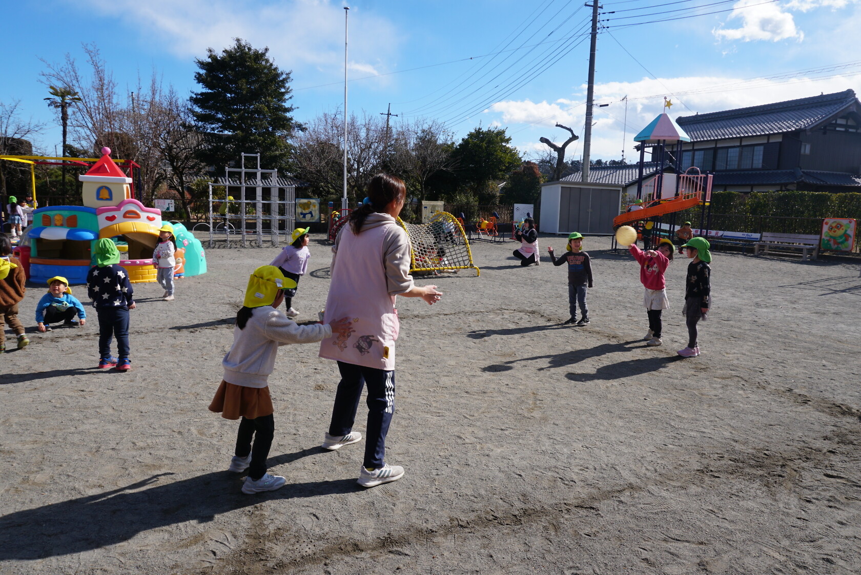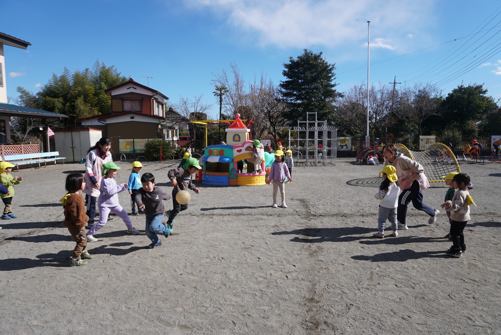 そして頑張った後には園庭でひまわりぐみさんと一緒にドッヂボールを楽しみました😆