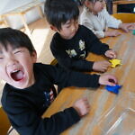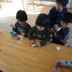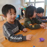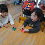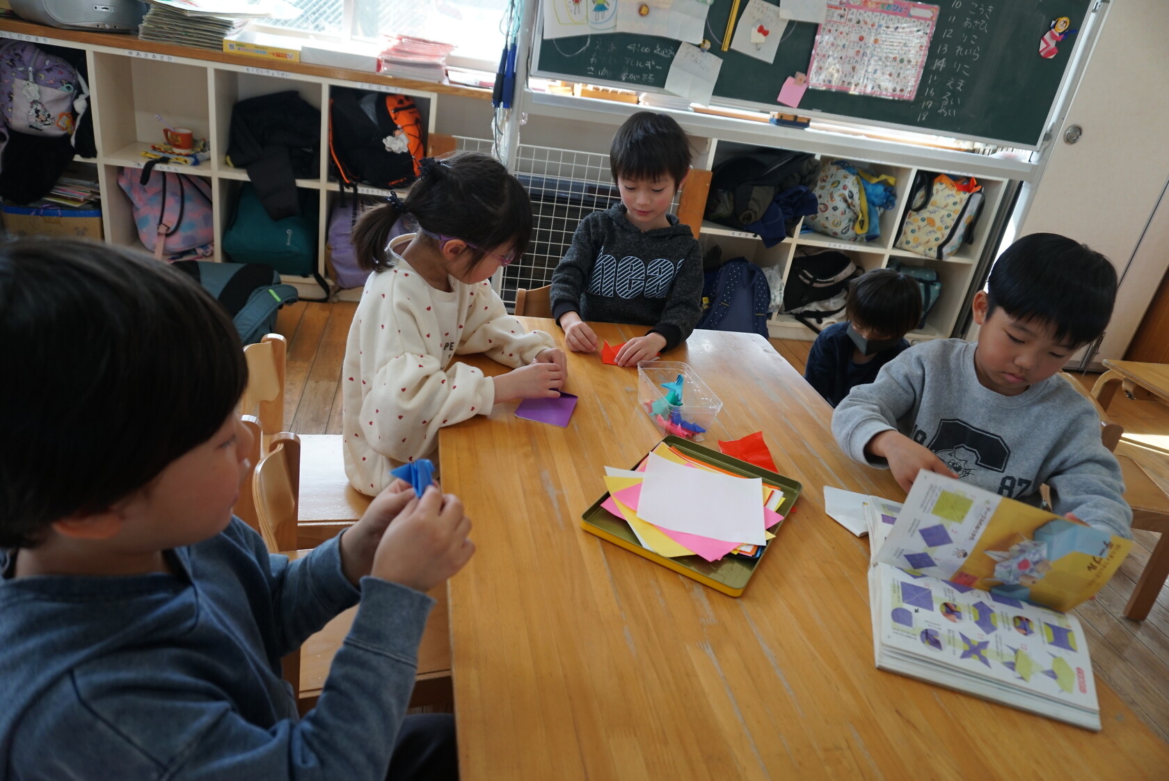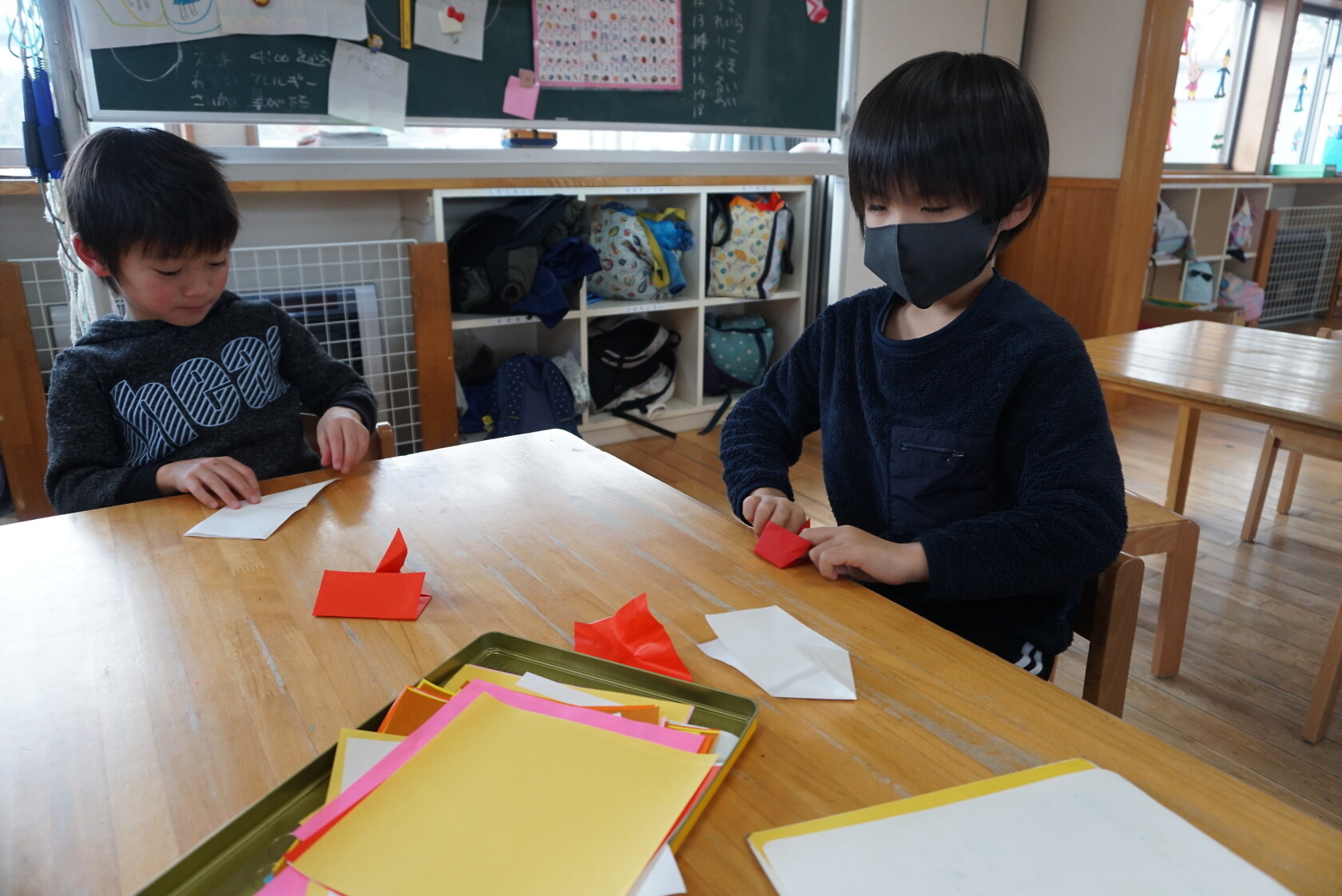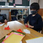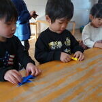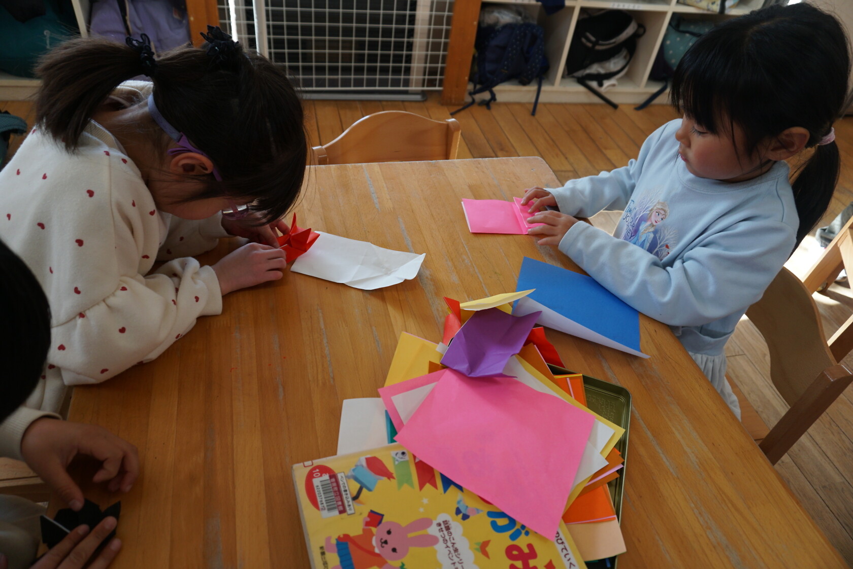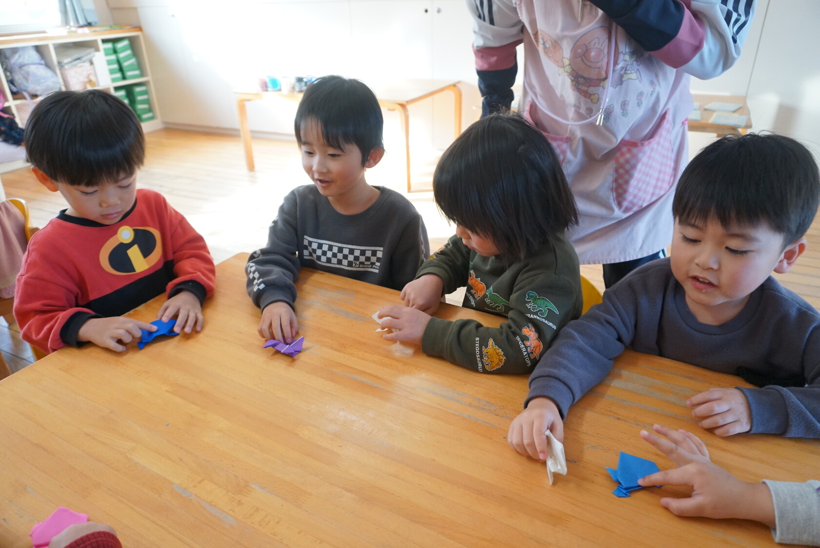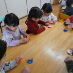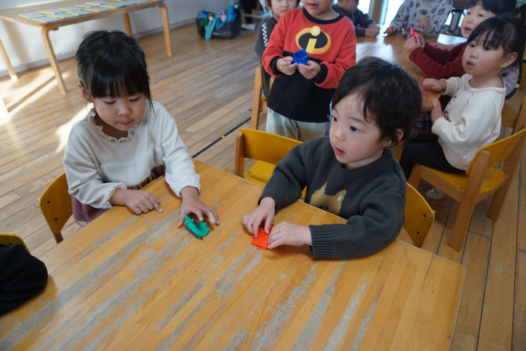 また今日はひまわりぐみさんがすみれぐみさんにピョンピョンがえる🐸の折り紙を折ってくれました😊