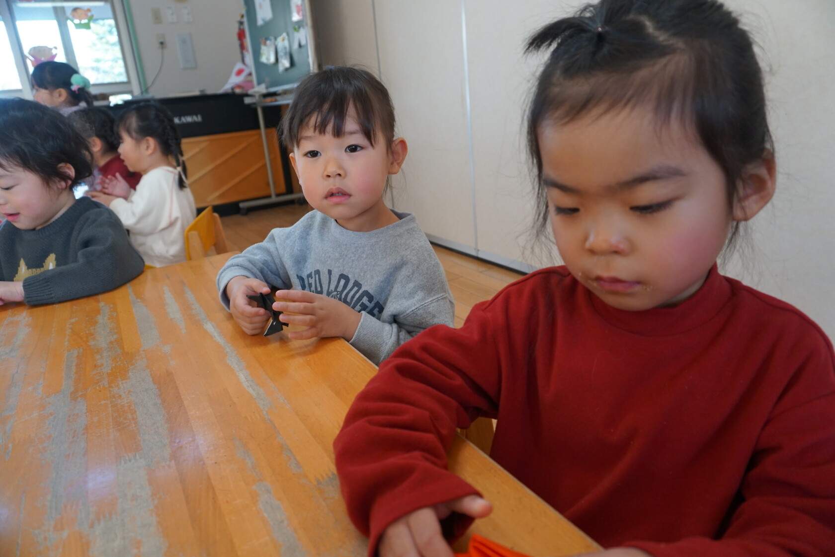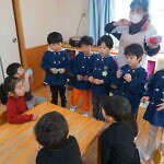 今日、すみれぐみさんはお遊戯会の予行練習をしました。