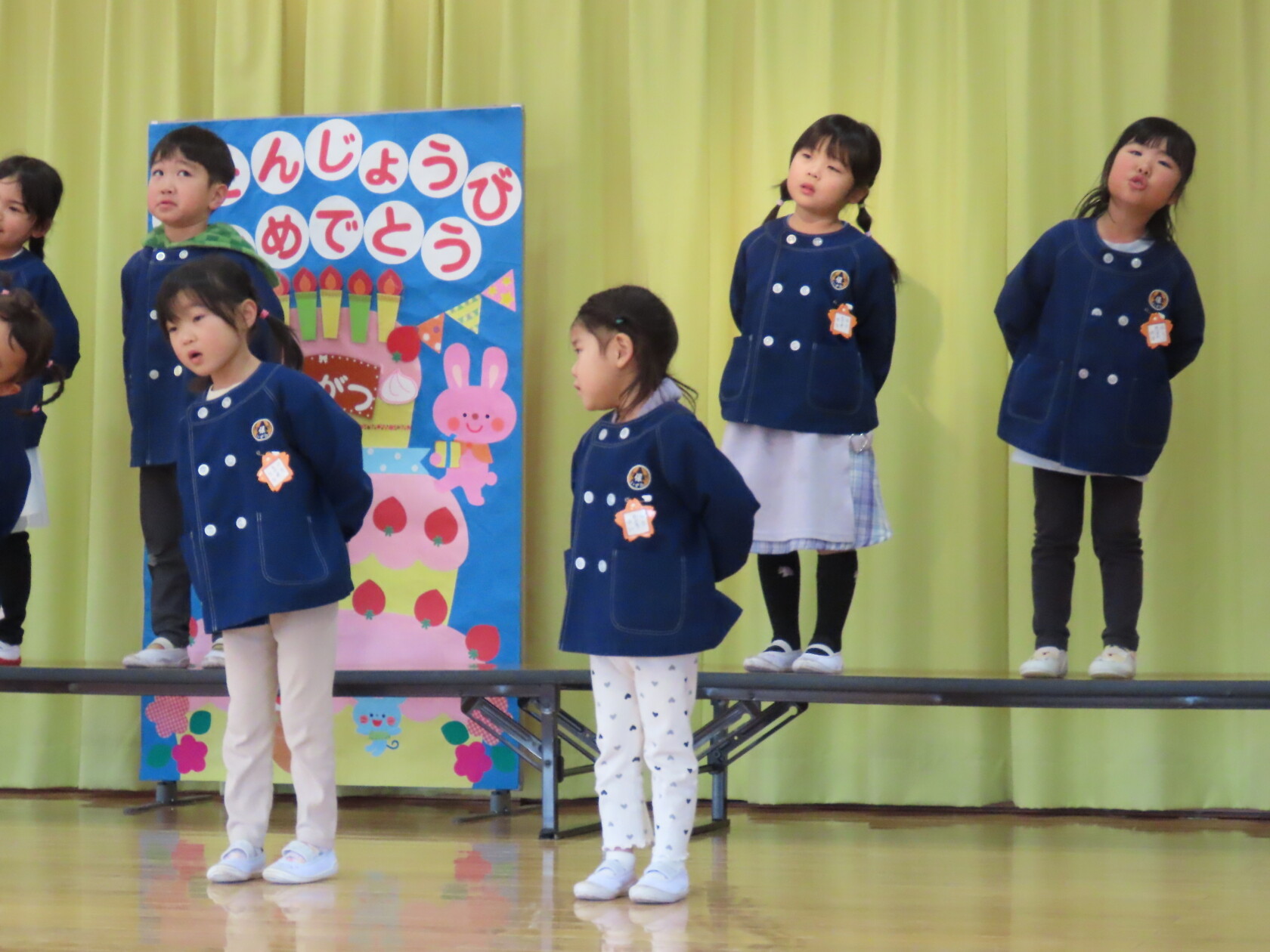お誕生会(以上児) 公開済み: 2025年2月19日更新: 2025年2月19日 今日は2月うまれのお友だちのお誕生会でした✨ 今月は2名のお友だちをお祝いしました👏 お歌🎵のプレゼントは・・・ すみれぐみ 「ゆげのあさ」「ふたりはなかよし」 ゆりぐみ 「ともだち讃歌」「ハローマイフレンズ」 ひまわりぐみ「雪祭り」「6才のうた」 22名のひまわり組さんがとても綺麗な歌声を聴かせてくれました 2月うまれのお友だちお誕生日おめでとうございます☺