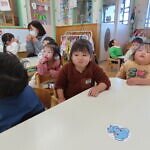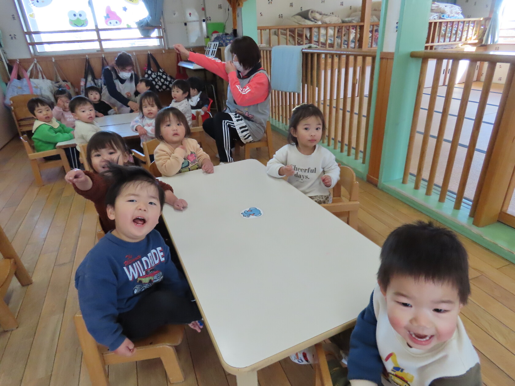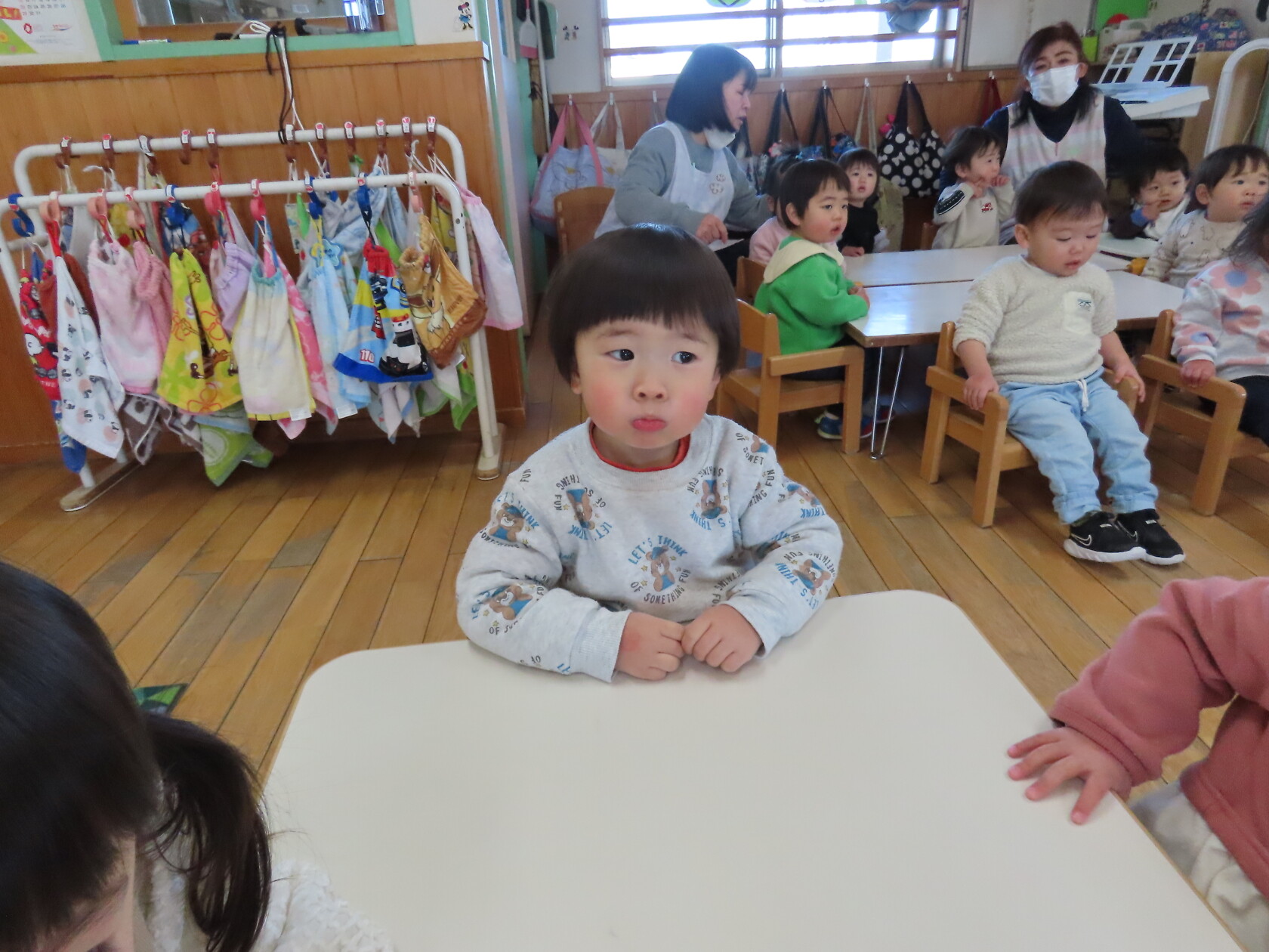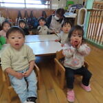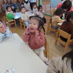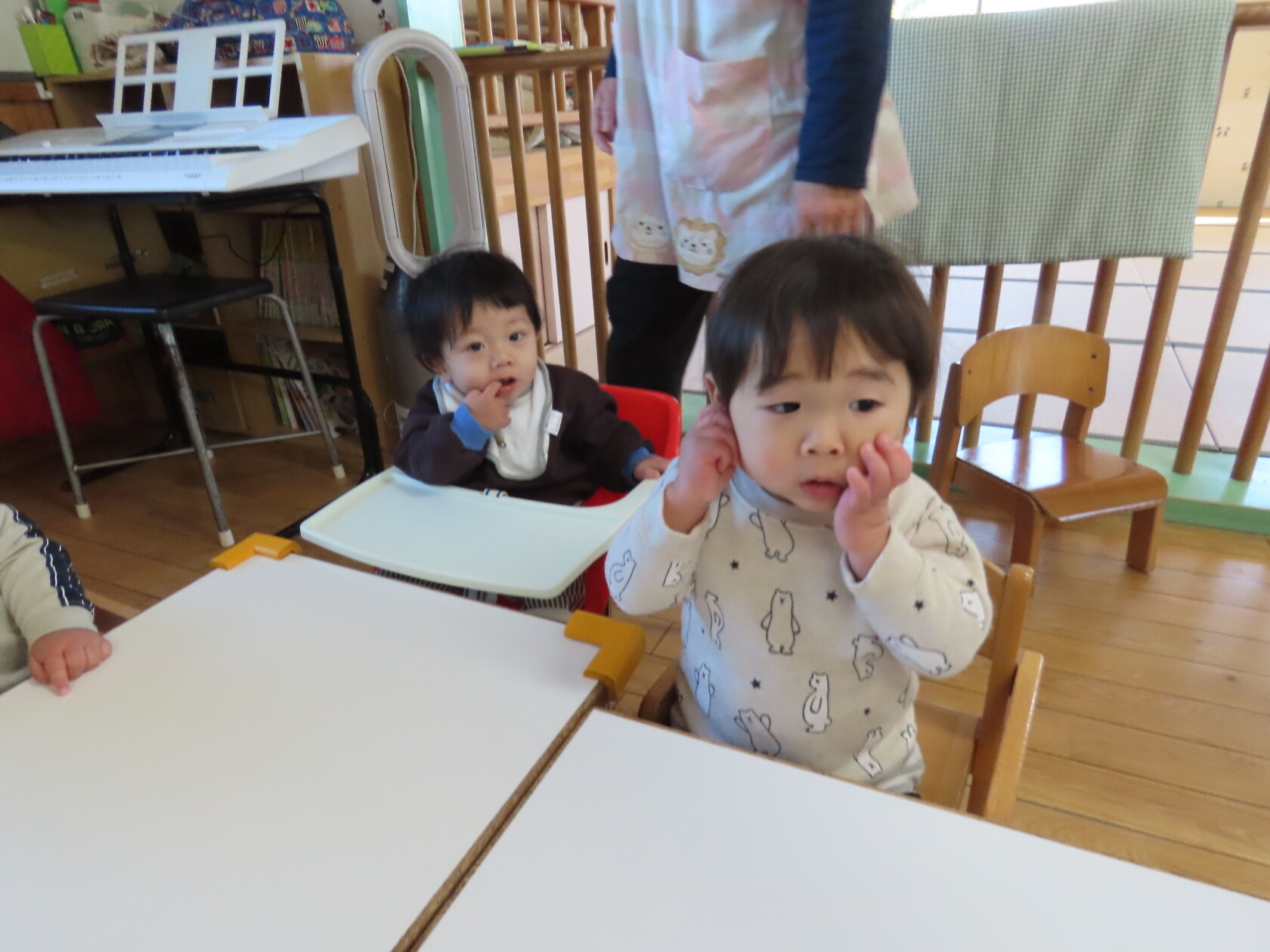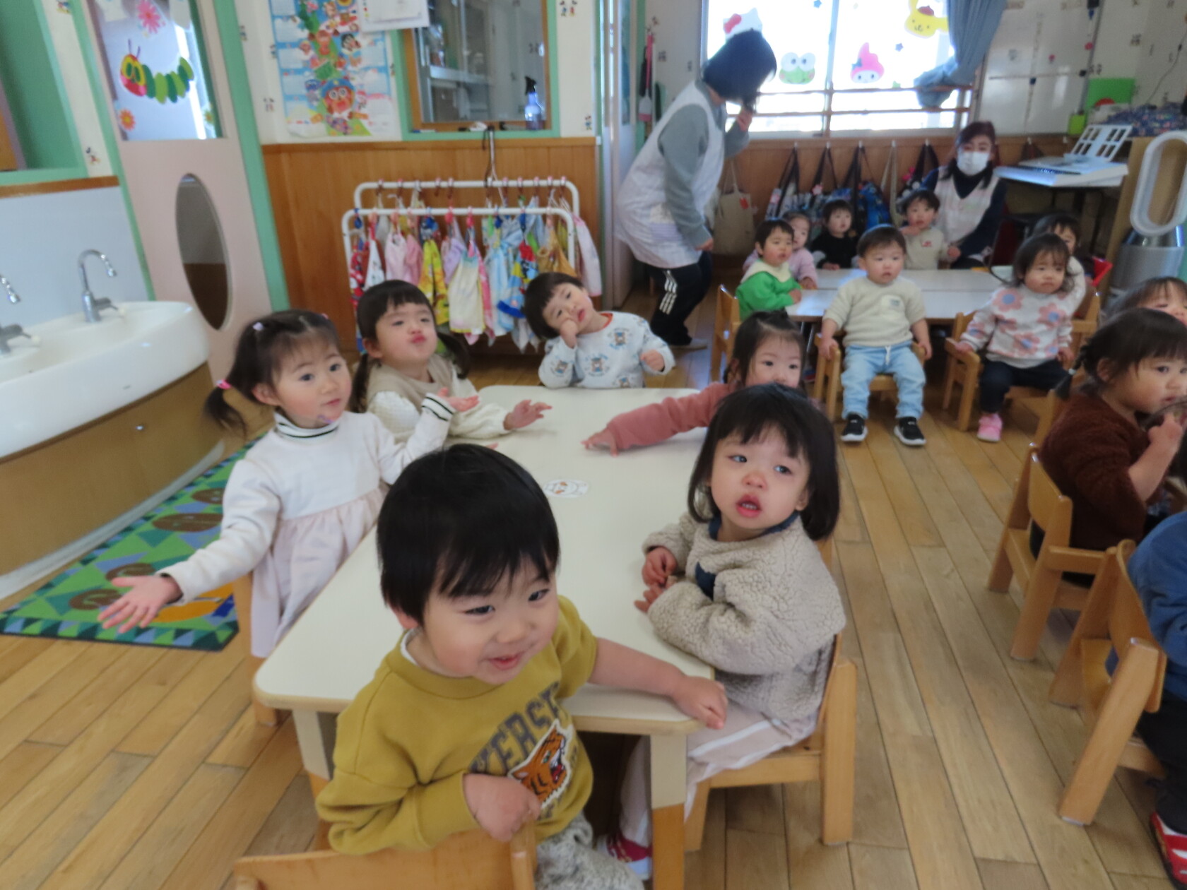 今日のできごと(さくら・小規模さくら) 公開済み: 2025年2月20日更新: 2025年2月20日 「にらめっこ」の絵本が好きなさくら組さん✨今日は小規模さんと一緒に「あっぷっぷ~😚」の掛け声で、ほっぺをぷく~っとふくらませたり、あっかんべーをしたり、とってもかわいい表情が撮れました🎵 絵本を聞くのも上手になってきたので、お家でも沢山の絵本に触れてみてください📕😊