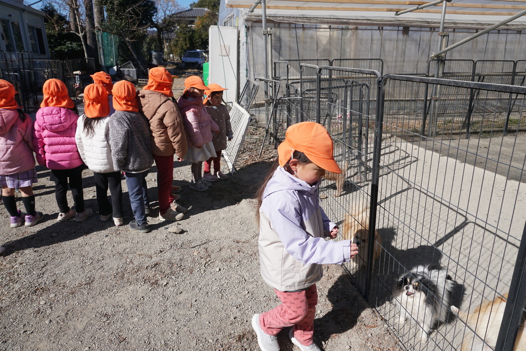 青空でいい天気の今日は、少し風もあったけれどお散歩日和りだったので、みんなで河原へ出掛けました🚶🏼💨 途中、ちょっと寄り道をし、たくさんの種類の犬がいるお家にお邪魔させていただきました😊 「あのいぬ、かわいい💕」「うちも、ほしい❗」と、楽しそうに見ているゆり組さんでした🐕🐩