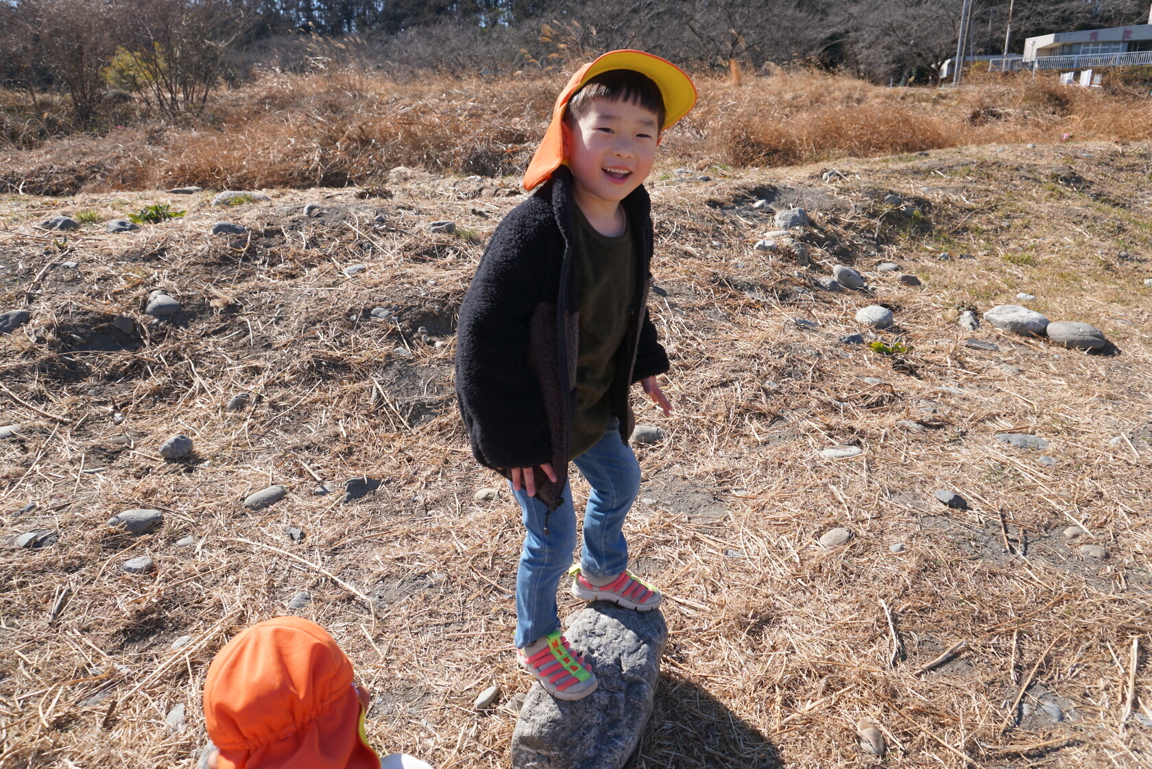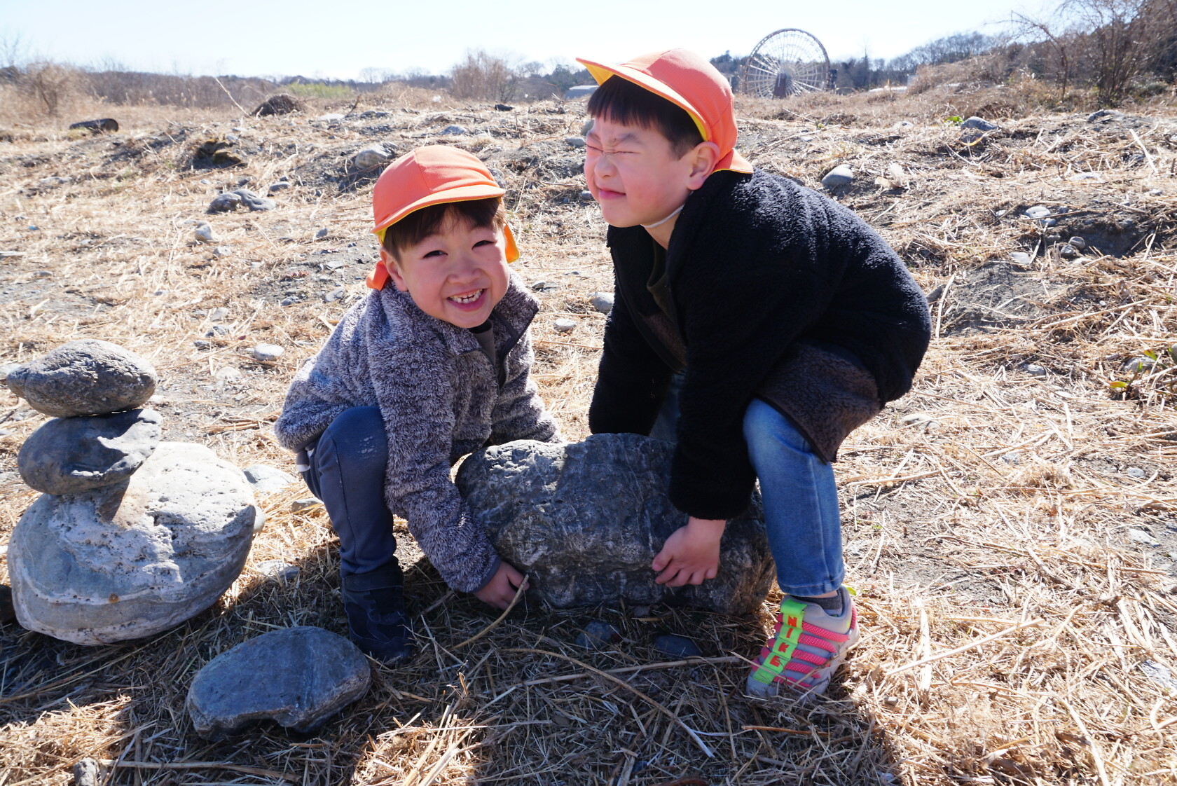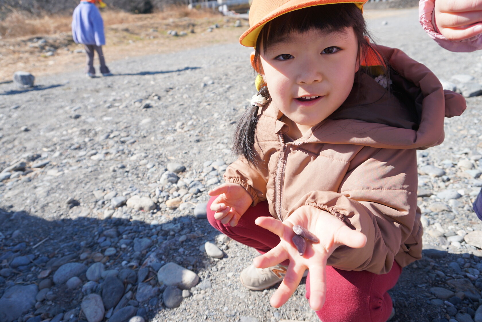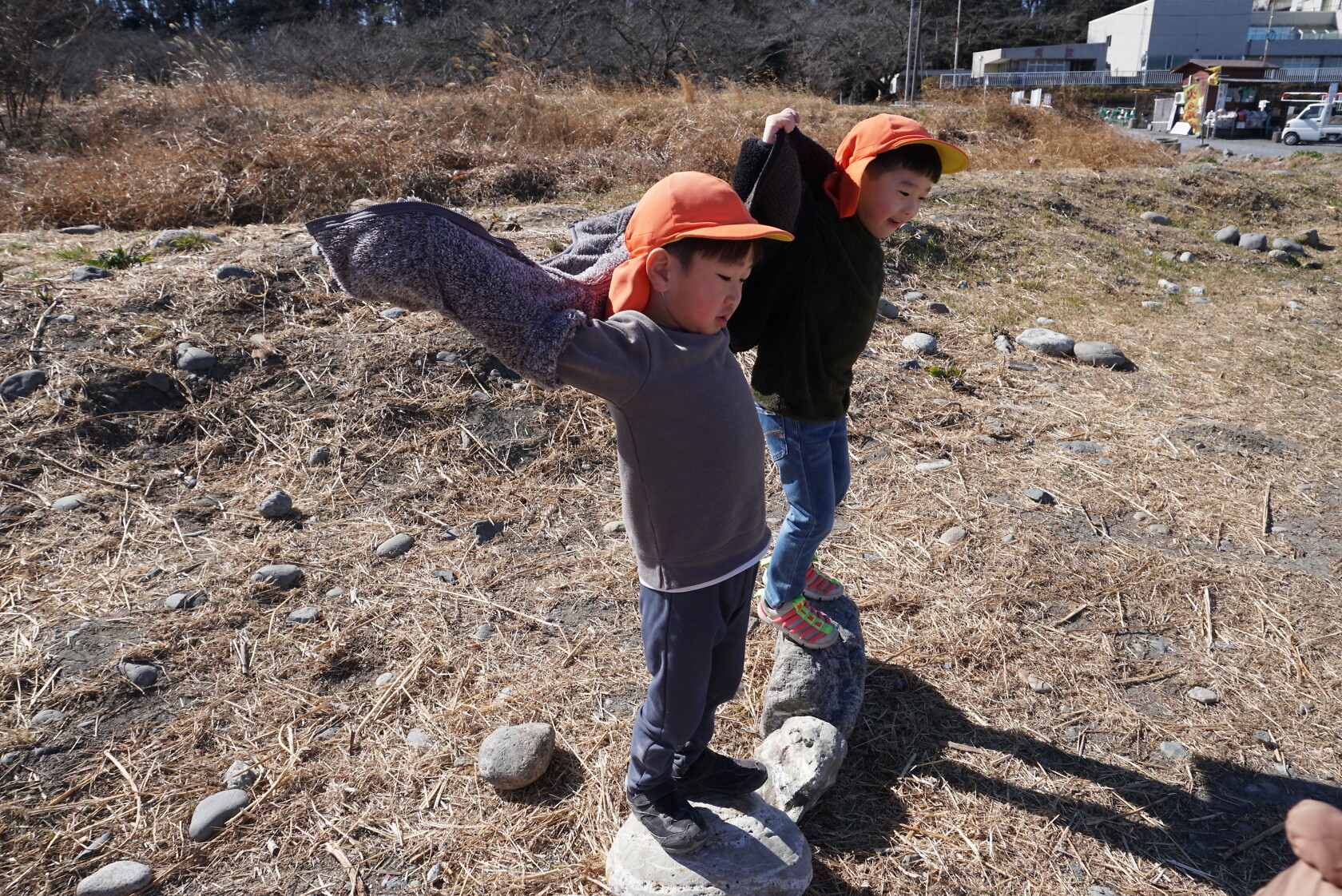 河原では、色んな形の石を見つけて、友達と見せ合いっこをしたり、大きな石の上に乗ってサーフィンを楽しむ子もいました🏄🏿 帰り道は、お腹がすいて力が出ない様子でしたが、みんなで励まし帰園しました😊