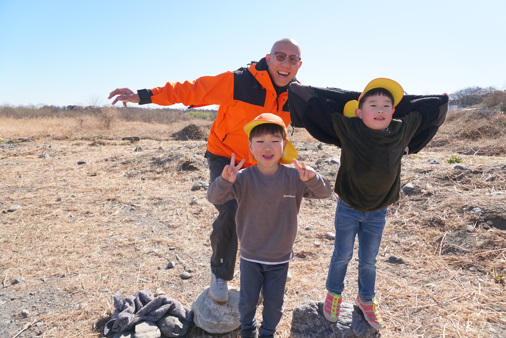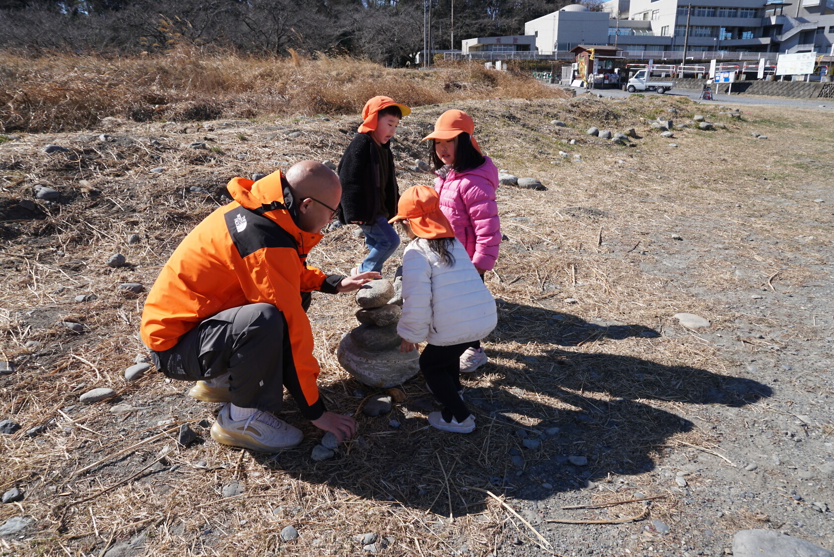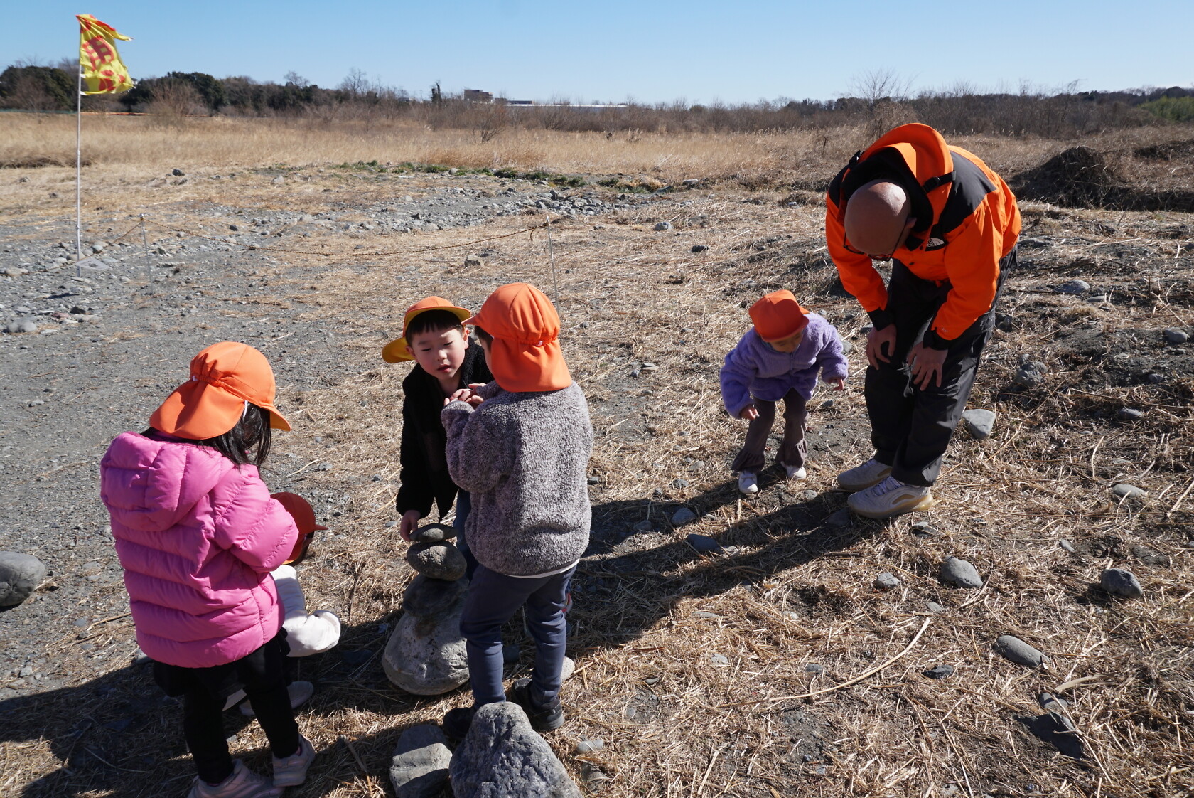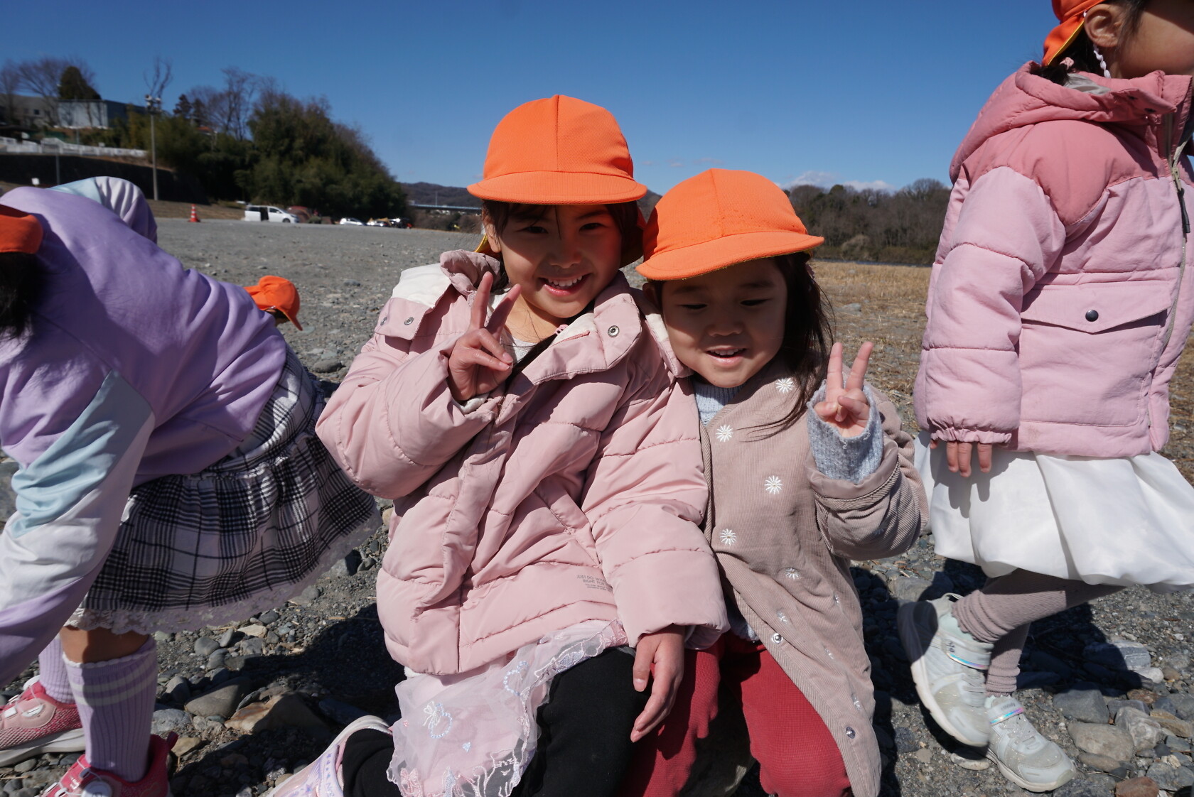 河原では、色んな形の石を見つけて、友達と見せ合いっこをしたり、大きな石の上に乗ってサーフィンを楽しむ子もいました🏄🏿 帰り道は、お腹がすいて力が出ない様子でしたが、みんなで励まし帰園しました😊