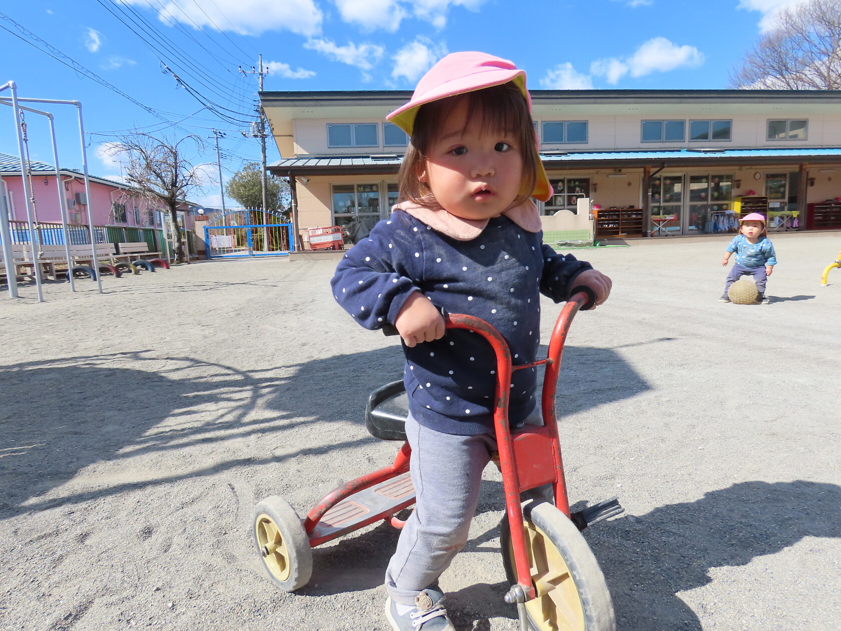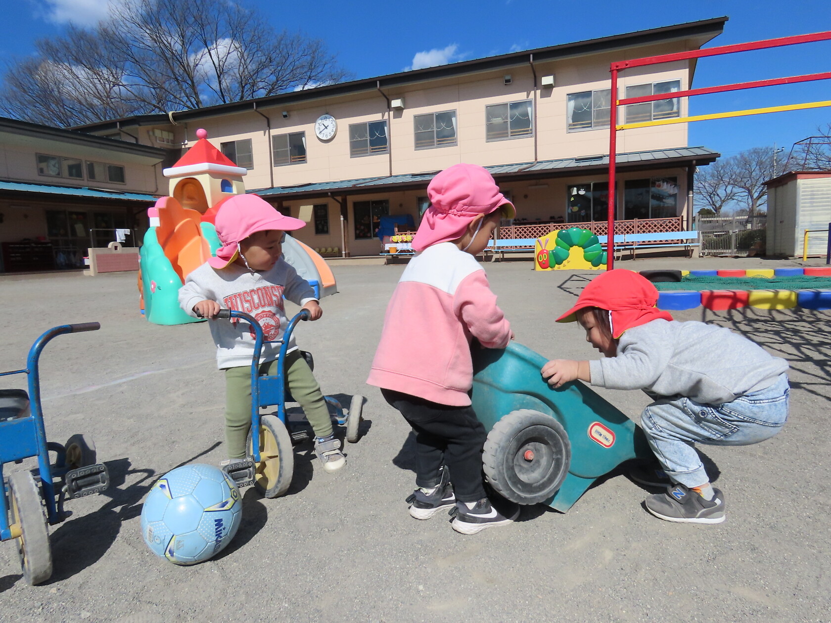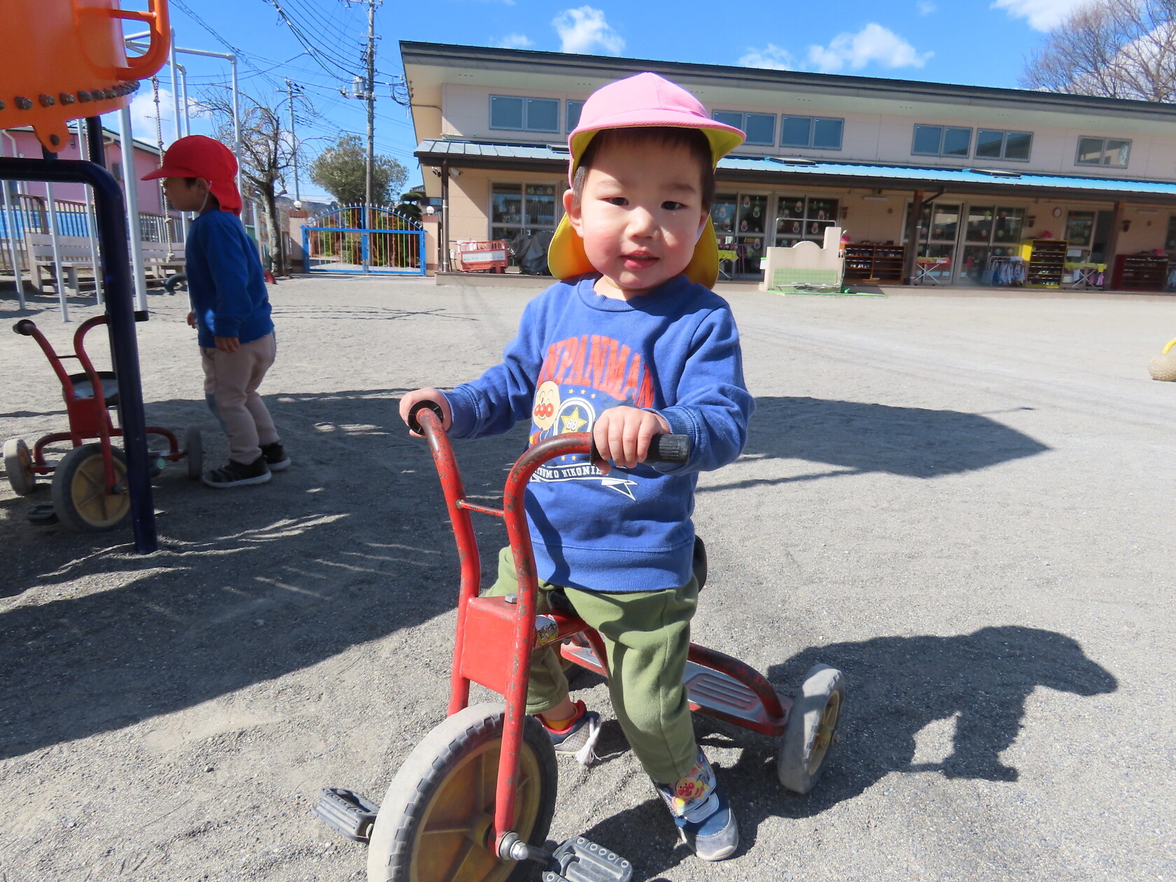 今日のできごと(小規模) 公開済み: 2025年2月26日更新: 2025年2月26日 今日は日中ポカポカ陽気だったので戸外遊びを楽しみました😁 「今日はお外いくいよ~!!」と声掛けをすると「やった~!!わ~い!!」と喜ぶ子ども達。 すぐに「ボールで遊ぼう❗かくれんぼしよう❗」とかわいらしい会話が聞こえてきました😊 園庭に行くとみんな笑顔で遊具にむかって一目散!!三輪車や滑り台、ボールなど思い思いの遊びを楽しんでいました。カメラを向けるとかわいい表情をたくさん見せてくれました😁