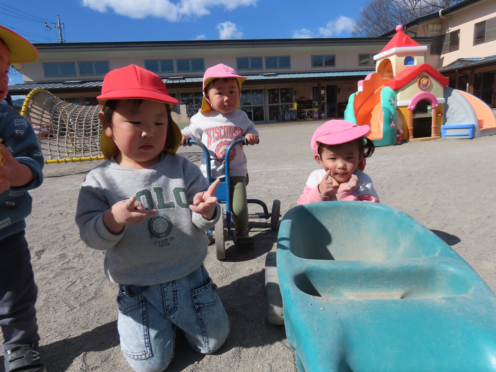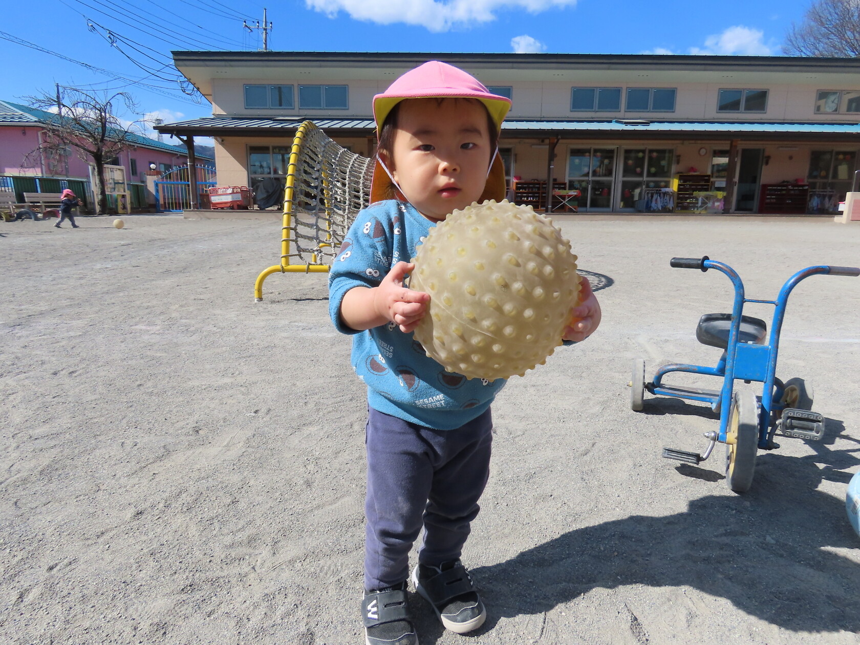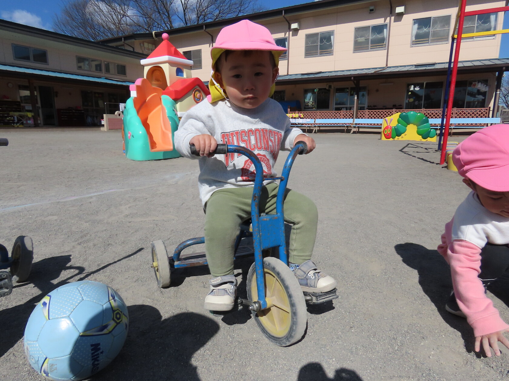 今日のできごと(小規模) 公開済み: 2025年2月26日更新: 2025年2月26日 今日は日中ポカポカ陽気だったので戸外遊びを楽しみました😁 「今日はお外いくいよ~!!」と声掛けをすると「やった~!!わ~い!!」と喜ぶ子ども達。 すぐに「ボールで遊ぼう❗かくれんぼしよう❗」とかわいらしい会話が聞こえてきました😊 園庭に行くとみんな笑顔で遊具にむかって一目散!!三輪車や滑り台、ボールなど思い思いの遊びを楽しんでいました。カメラを向けるとかわいい表情をたくさん見せてくれました😁