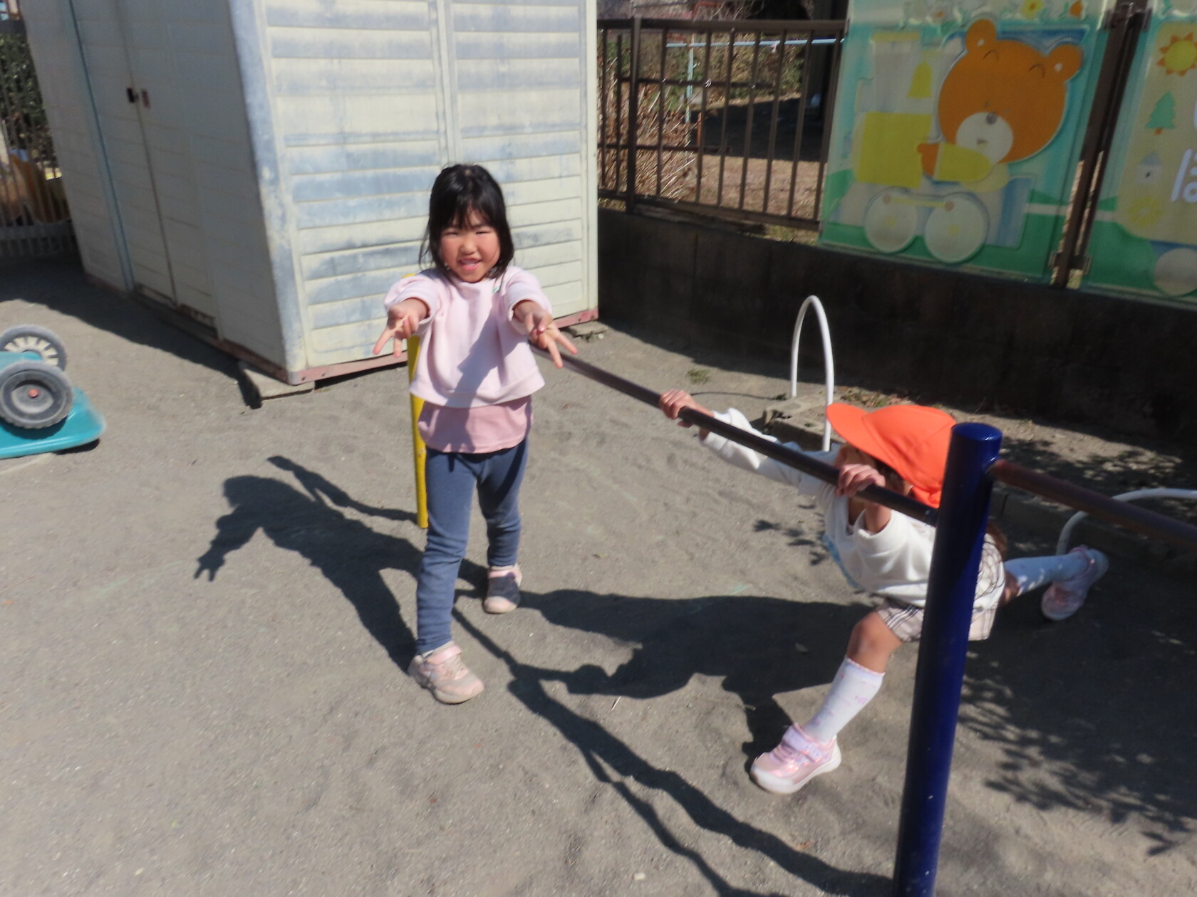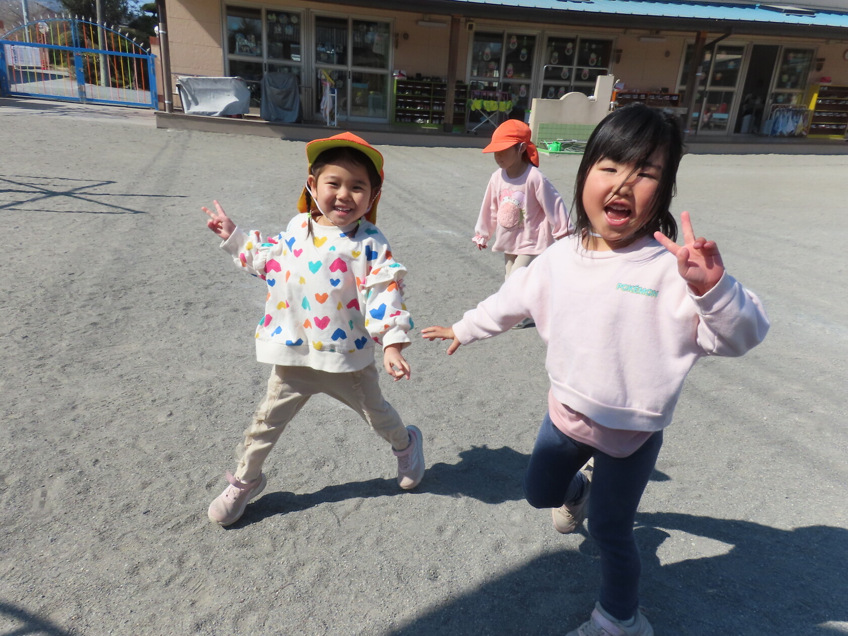 今日のできごと(ゆり) 公開済み: 2025年2月27日更新: 2025年2月27日 最近は日中、暖かい日が続いています🌞 外遊びが大好きなゆり組さんは、「今日は、給食の前に、外遊びしよう!」と伝えると、とっても張り切って活動に取り組んでいます💪 増え鬼、色鬼がクラスで流行っていて、友達を誘って楽しむ子が増えています🎵 今日も少しの時間でしたが、汗をかいて遊んでいました💦