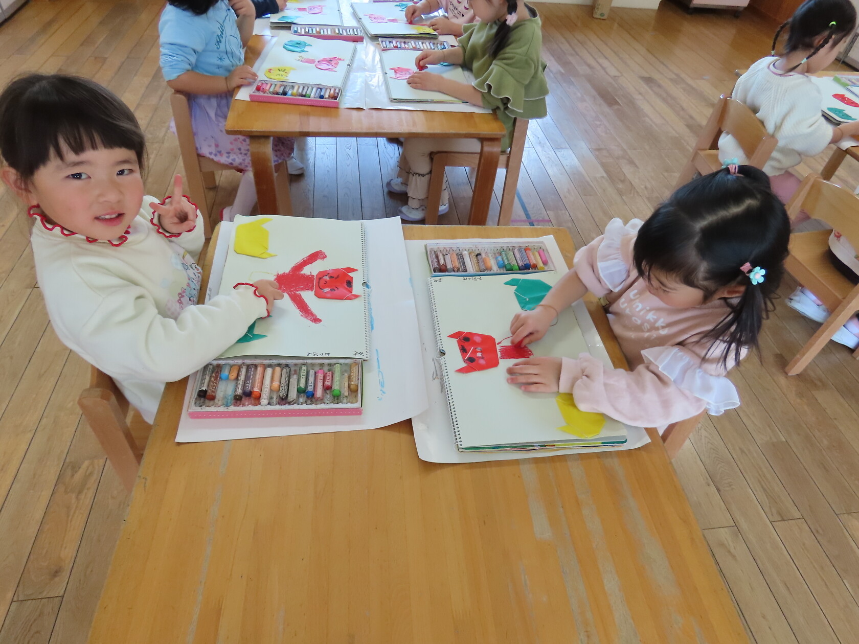 今日は製作帳の続きをしました😊 昨日、赤・黄色・緑の鬼を折り紙で折りましたが、みんなとても上手で、しっかりと折り目をつけていましたǴ […]