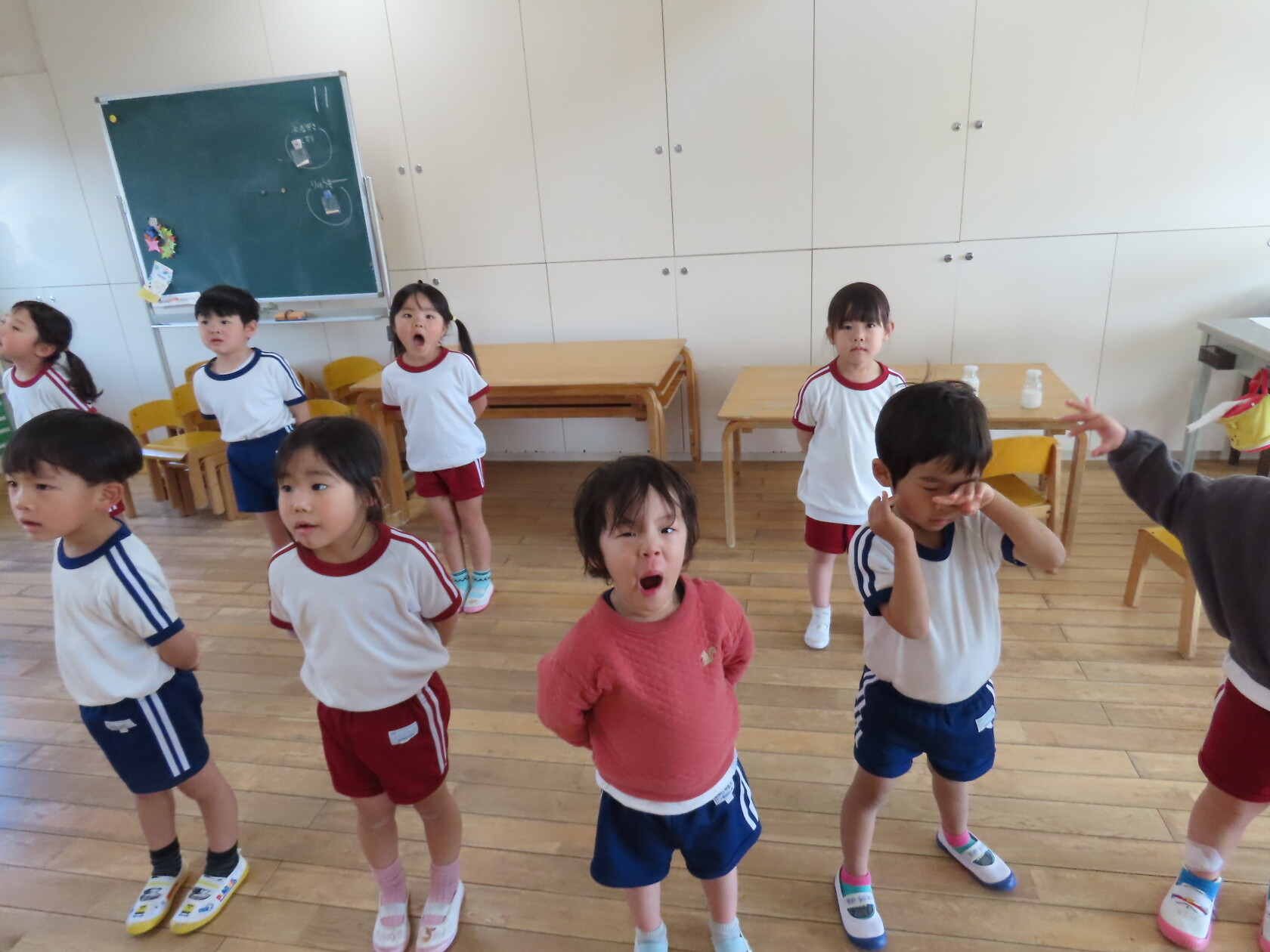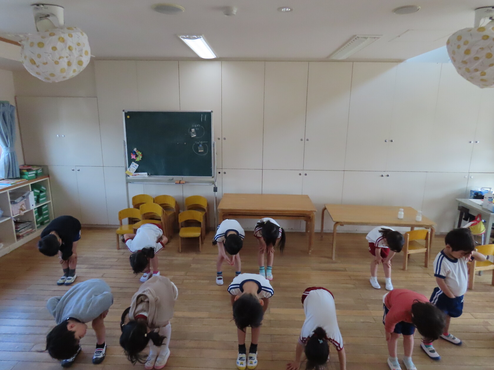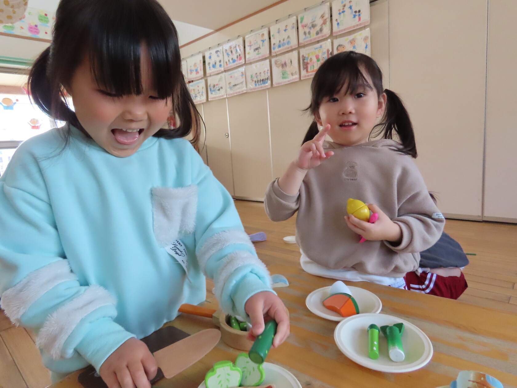 体育指導のあとは、お部屋でおままごととトンネル迷路で遊びました。