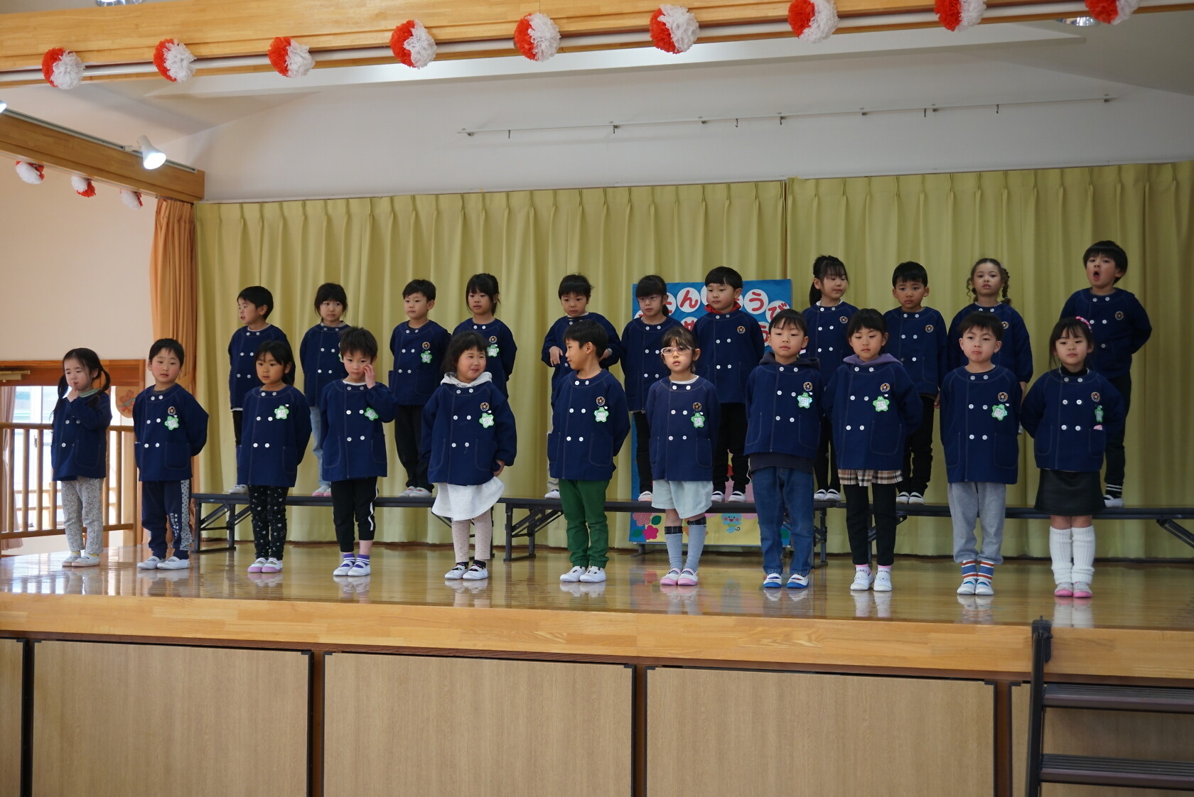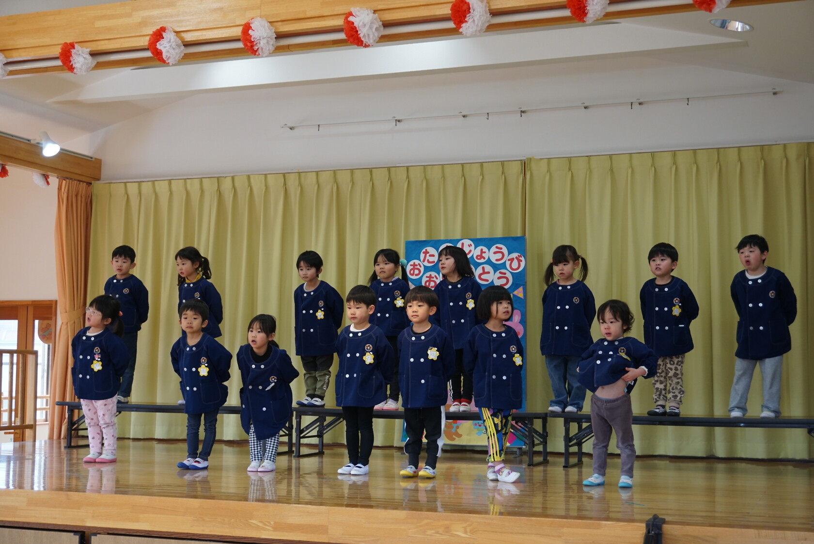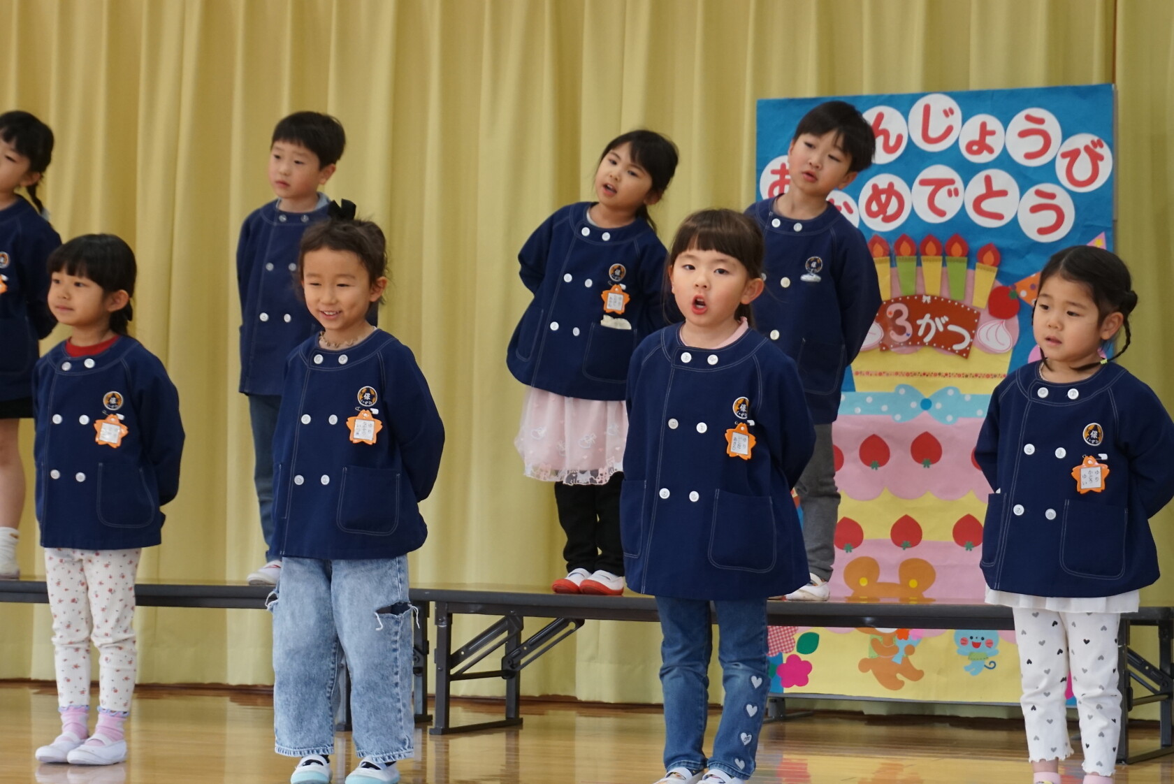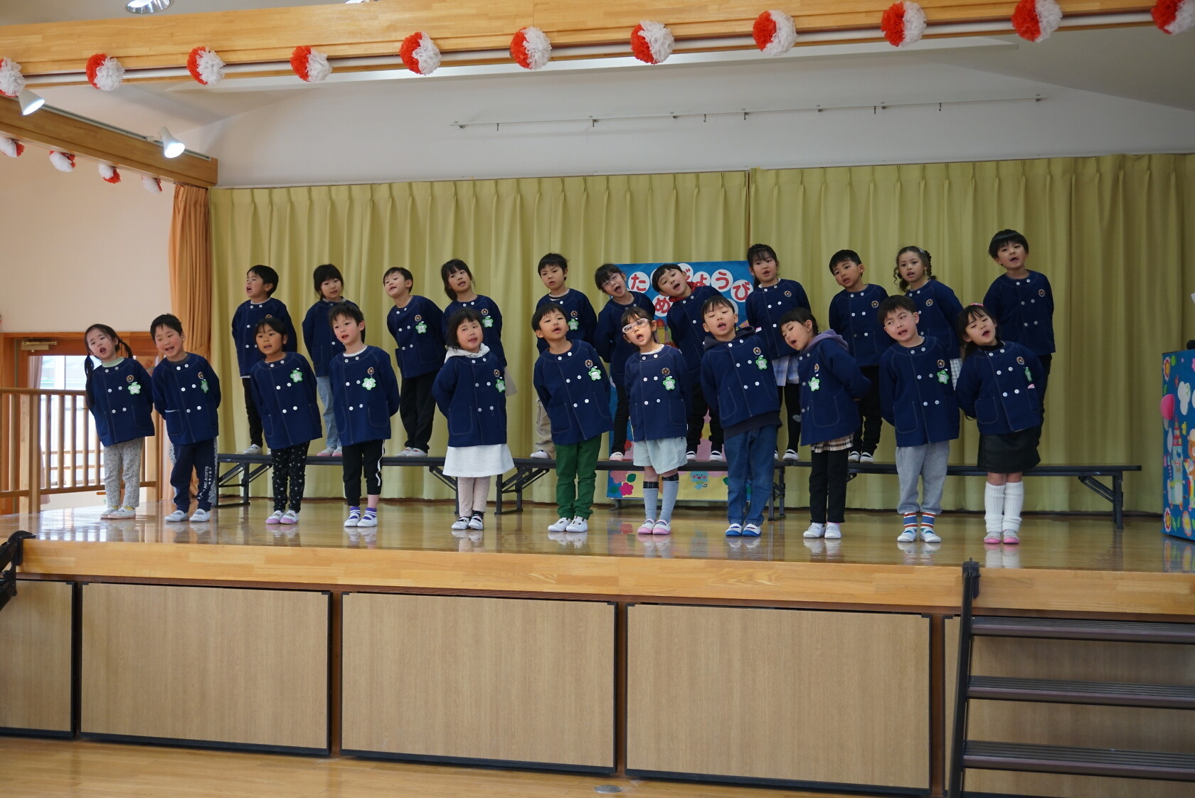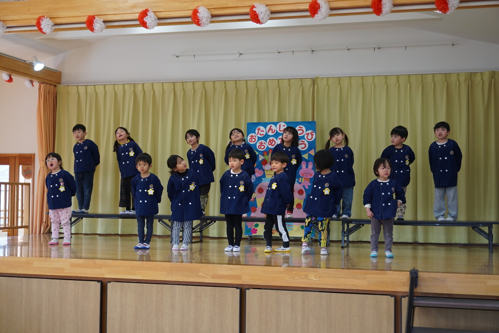 以上児お遊戯会 公開済み: 2025年3月18日更新: 2025年8月7日 今日は、3月生まれのお誕生会でした🍰 3月生まれの2名のお友だちは、ステージの上でしっかりと質問に答えてくれ、カードをもらいニッコリでした😆 歌のプレゼントは・・・ すみれぐみ「はる」「ぼくのミックスジュース」 ゆりぐみ「青い空はポケットさ」「かえでの木のうた」 ひまわりぐみ「ね」「さよならぼくたちのほいくえん」 を歌いました。どのクラスもお歌が上手になりましたね🌸 みんな4歳・5歳・6歳になりました!! 心も体も健やかに大きくなってくださいね💕✨