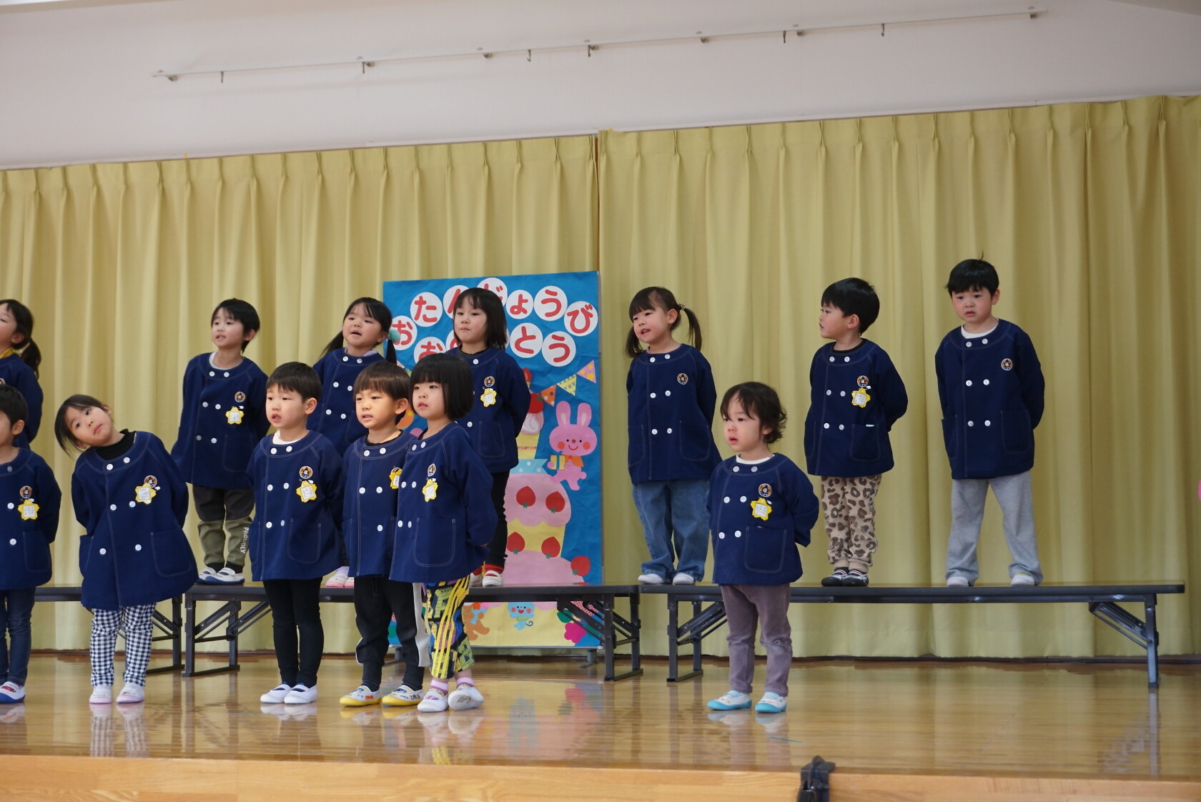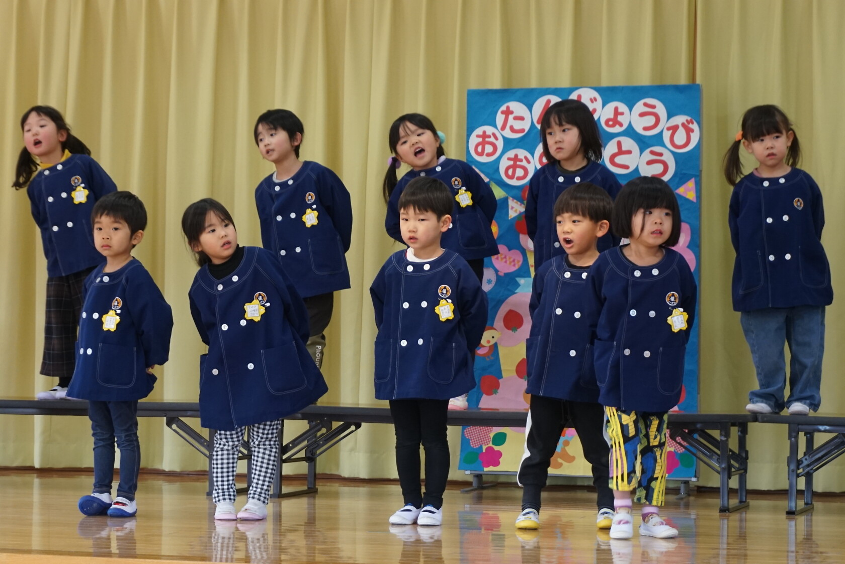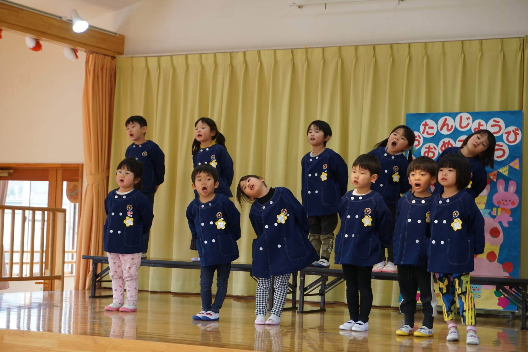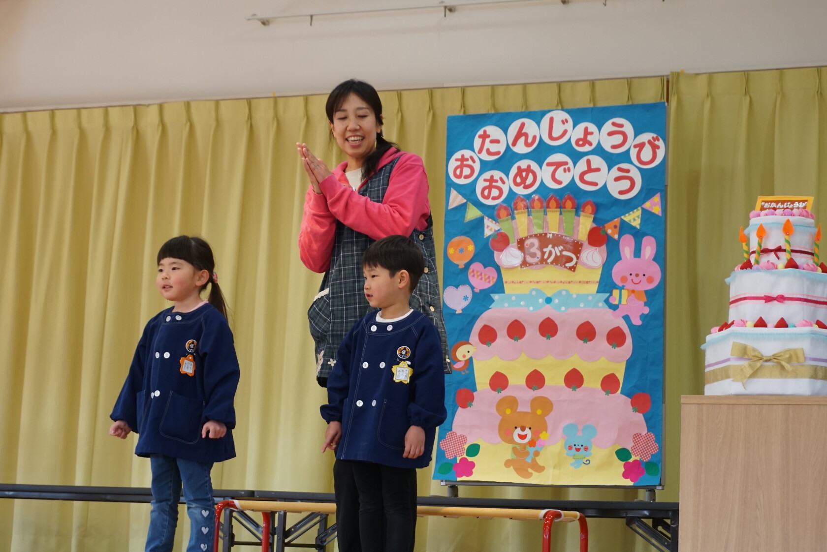 以上児お遊戯会 公開済み: 2025年3月18日更新: 2025年8月7日 今日は、3月生まれのお誕生会でした🍰 3月生まれの2名のお友だちは、ステージの上でしっかりと質問に答えてくれ、カードをもらいニッコリでした😆 歌のプレゼントは・・・ すみれぐみ「はる」「ぼくのミックスジュース」 ゆりぐみ「青い空はポケットさ」「かえでの木のうた」 ひまわりぐみ「ね」「さよならぼくたちのほいくえん」 を歌いました。どのクラスもお歌が上手になりましたね🌸 みんな4歳・5歳・6歳になりました!! 心も体も健やかに大きくなってくださいね💕✨