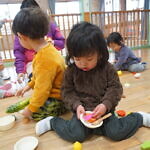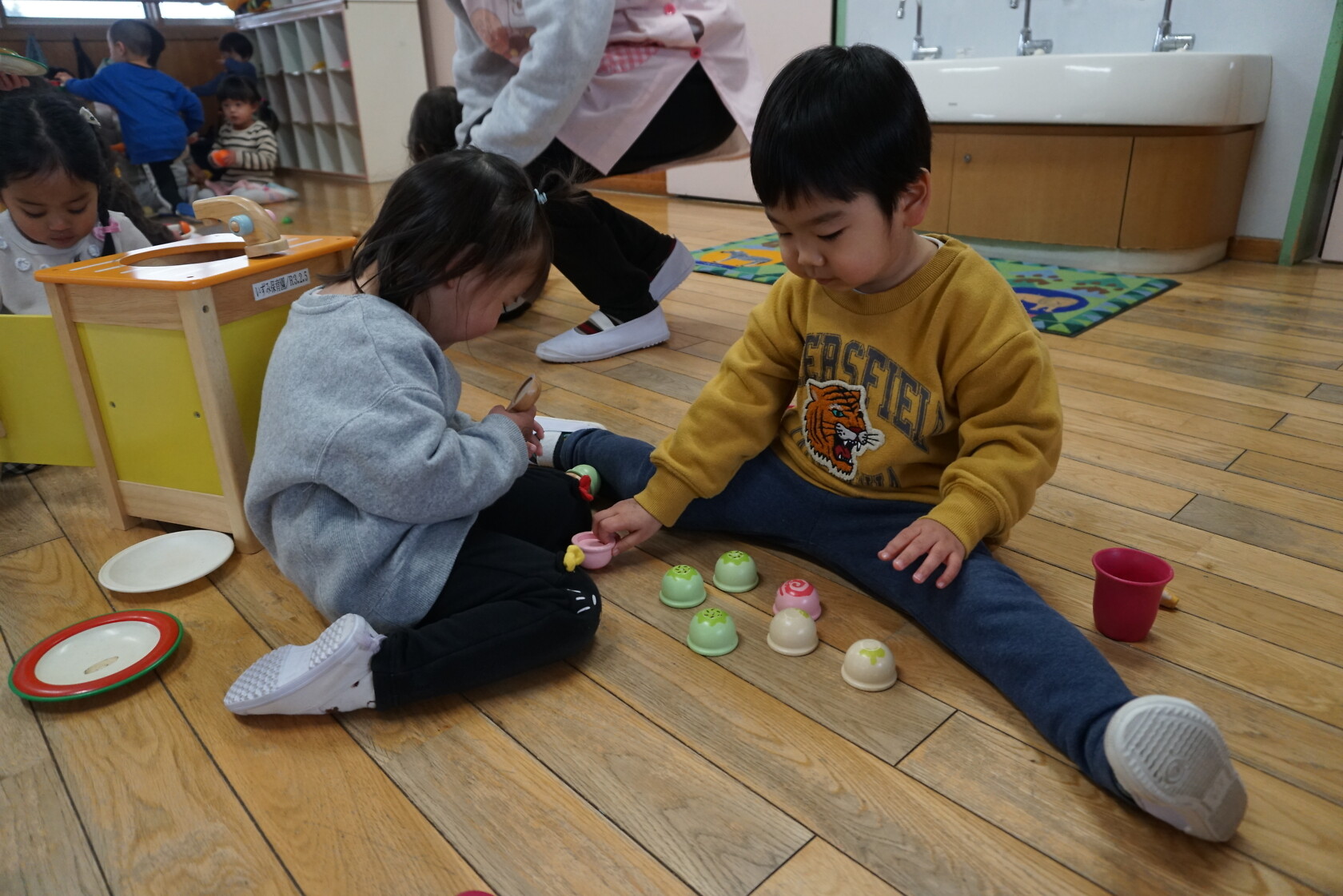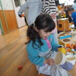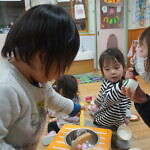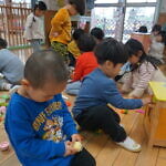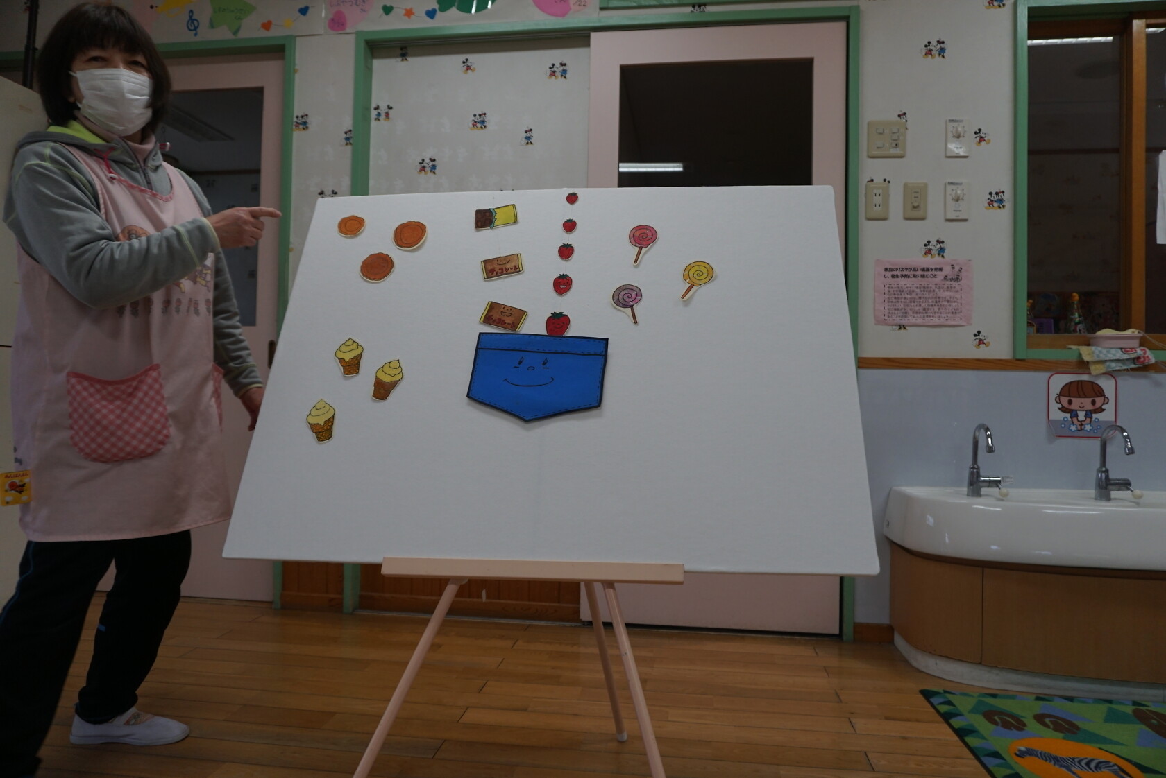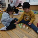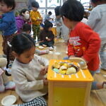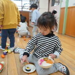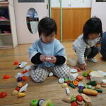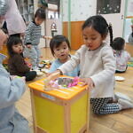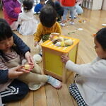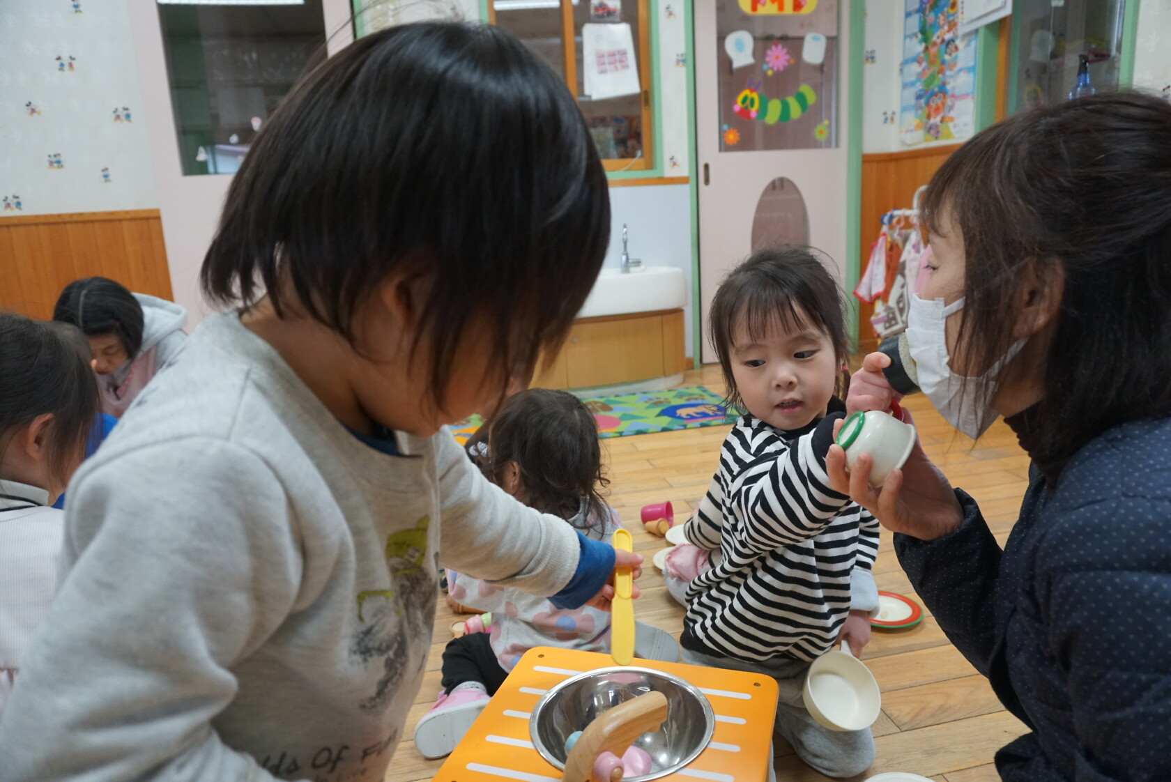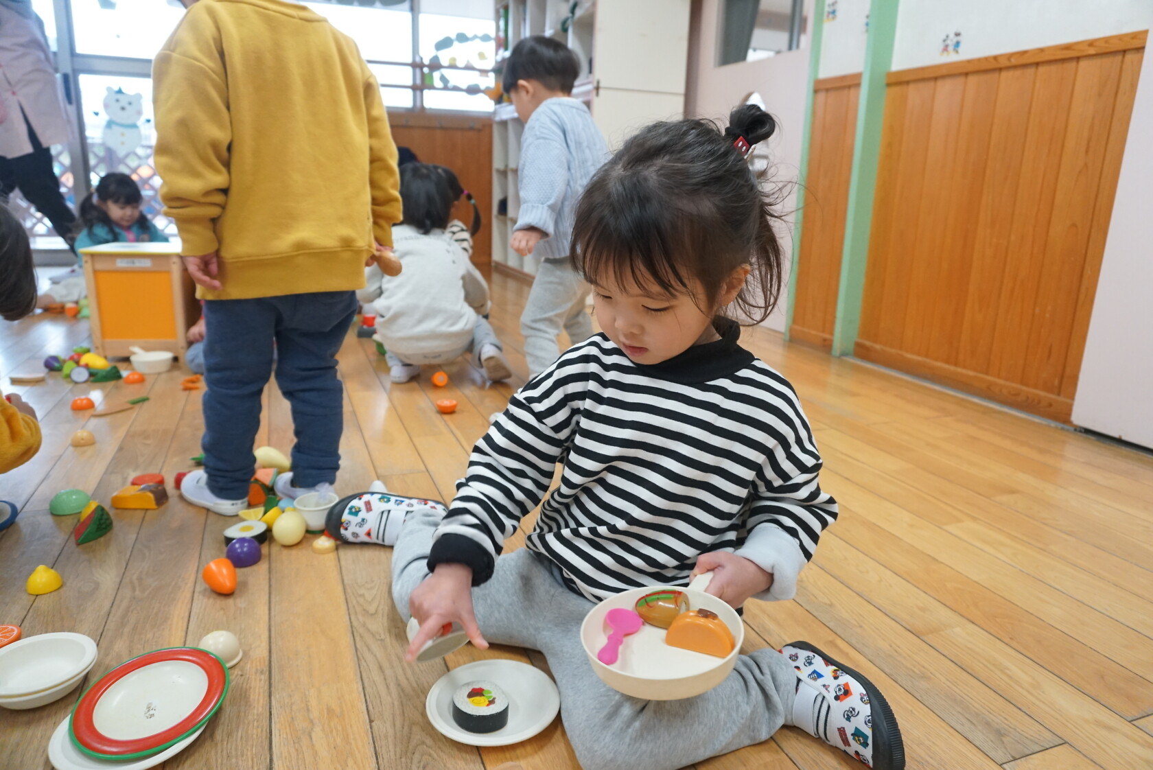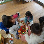 「ふしぎなポケット」のパネルシアターを真剣に見て、おままごと。「いらっしゃいませ~」コンロのおもちゃにフライパンを乗せて「あついから気をつけてね」など、楽しげな会話がたくさん聞こえてきました😁