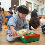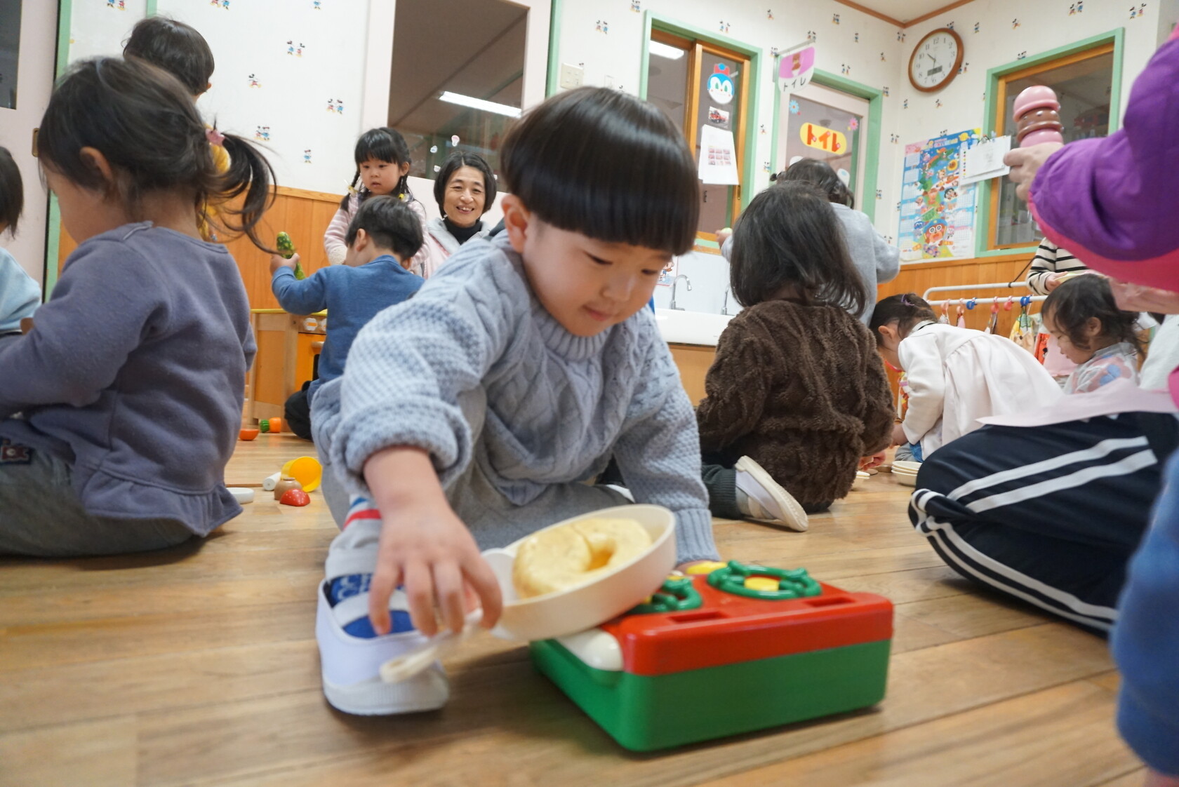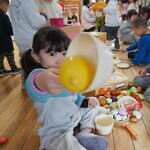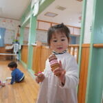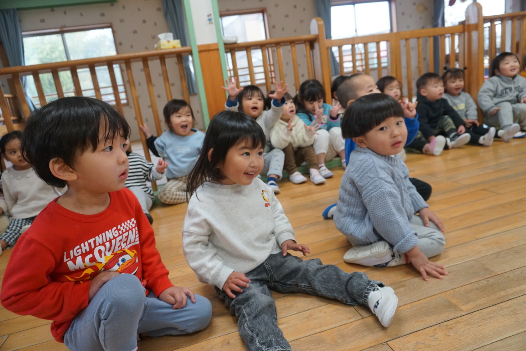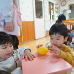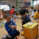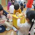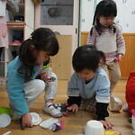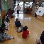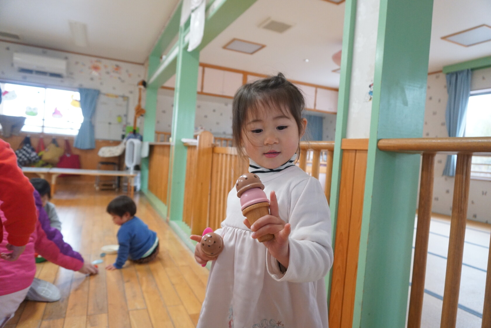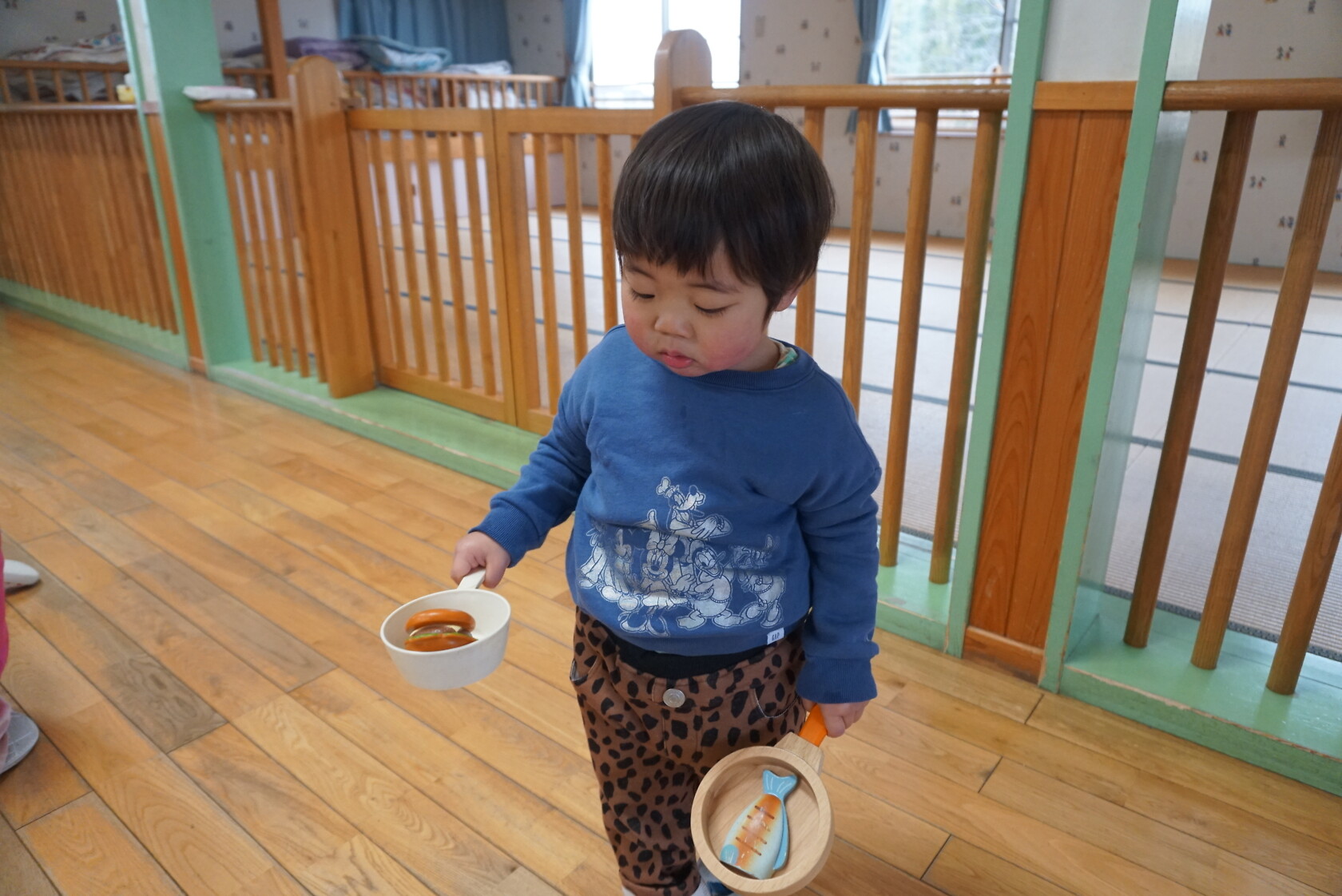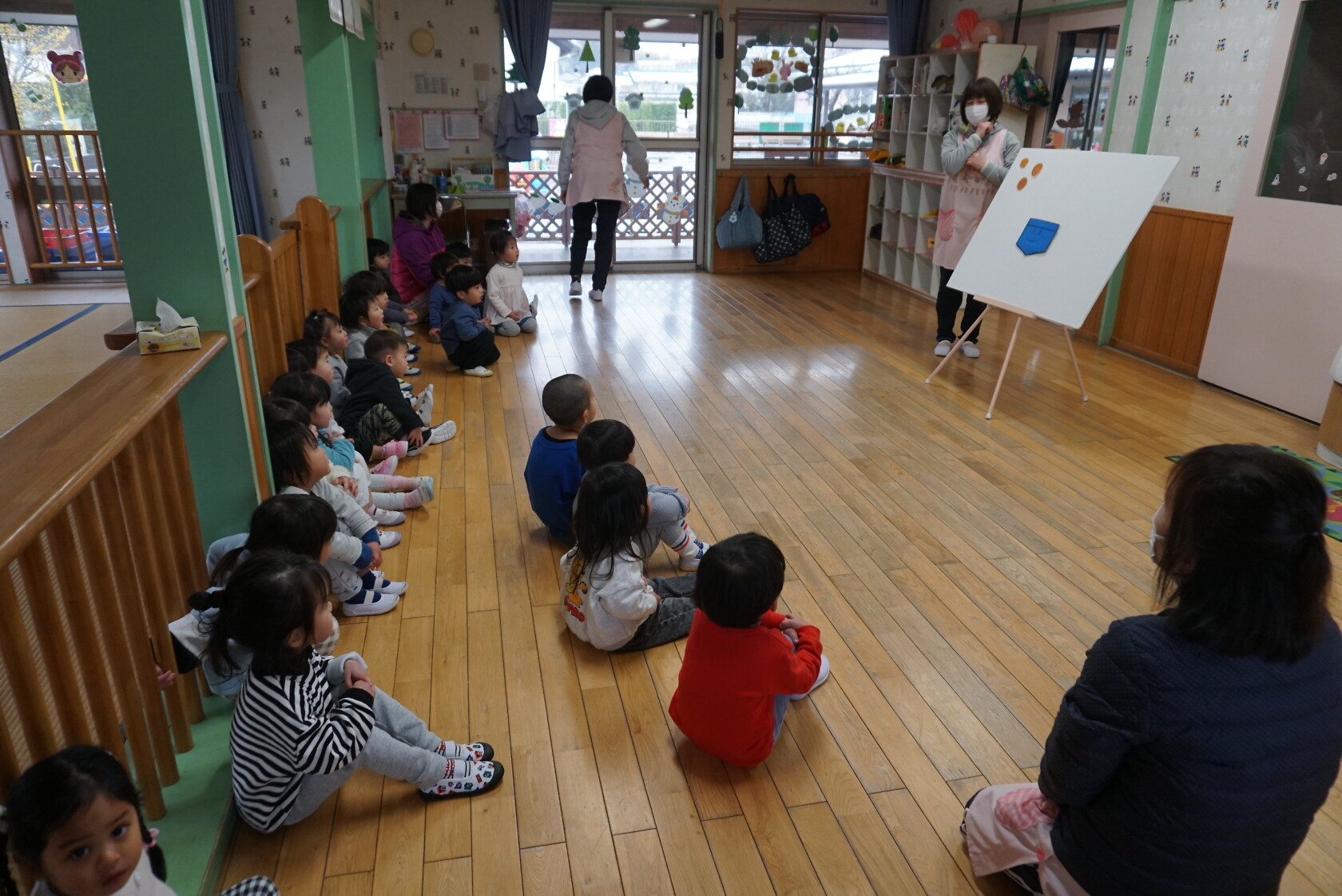 「ふしぎなポケット」のパネルシアターを真剣に見て、おままごと。「いらっしゃいませ~」コンロのおもちゃにフライパンを乗せて「あついから気をつけてね」など、楽しげな会話がたくさん聞こえてきました😁