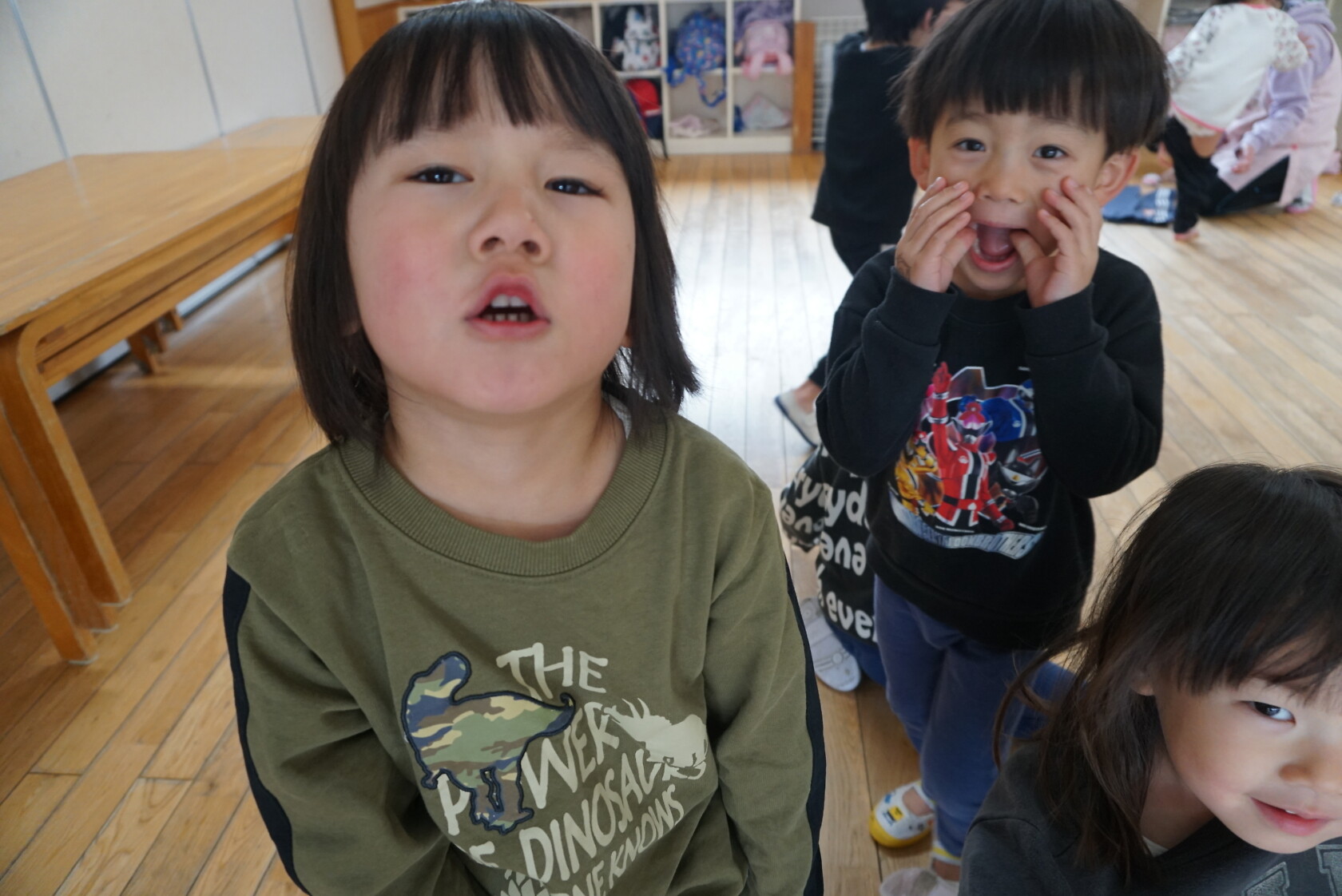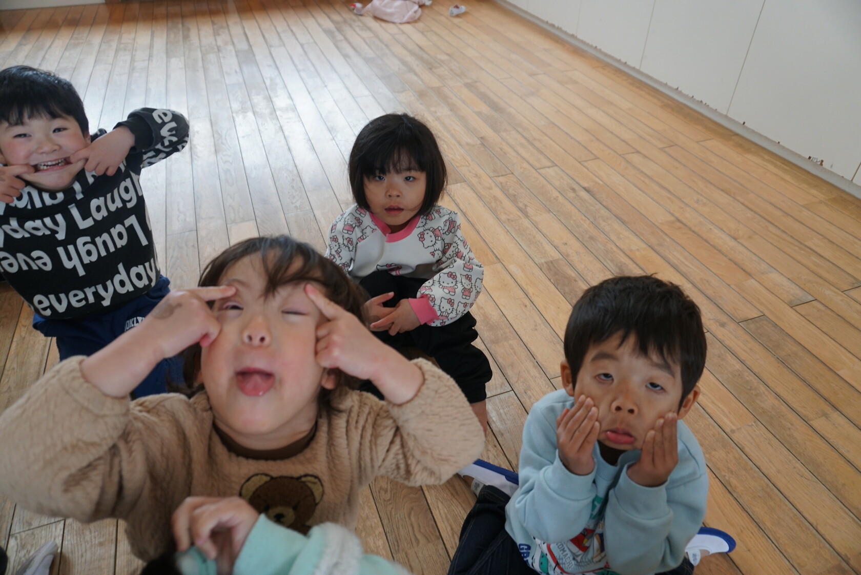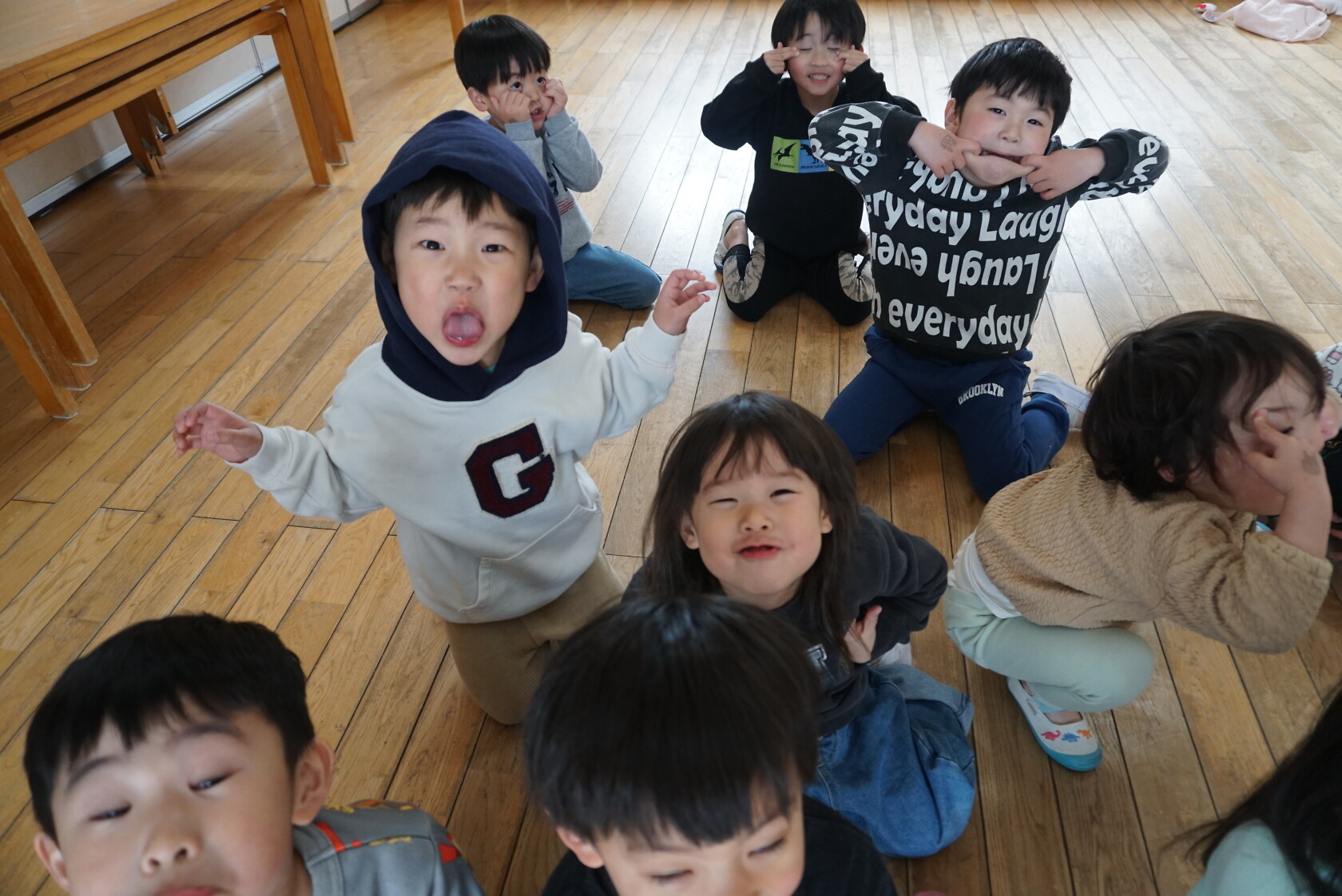 今日のできごと(すみれ) 公開済み: 2025年3月19日更新: 2025年8月7日 今日は雪と雨で寒いですが、すみれぐみのお部屋は賑やかでホットです!!! 爆弾ゲーム、あっちむいてホイゲーム、にらめっこ対決、色々なゲームをして盛り上がりました。 にらめっこで面白い顔を極めた子ども達の表情を今日はお届けします👍