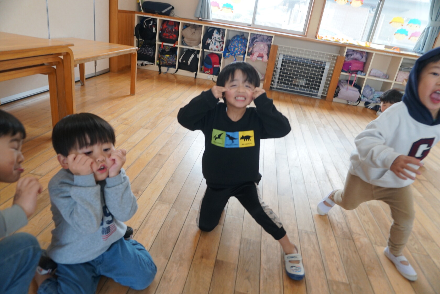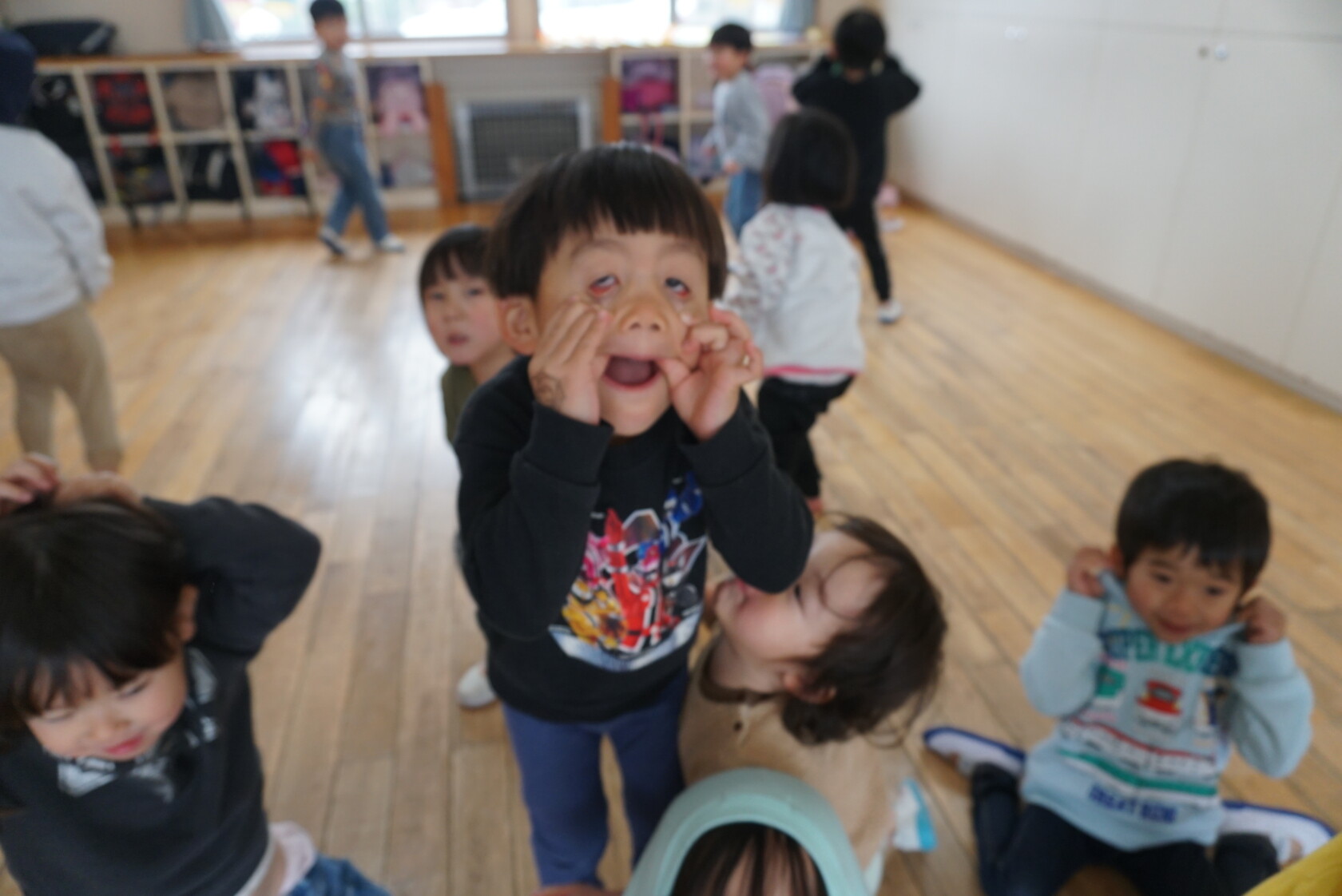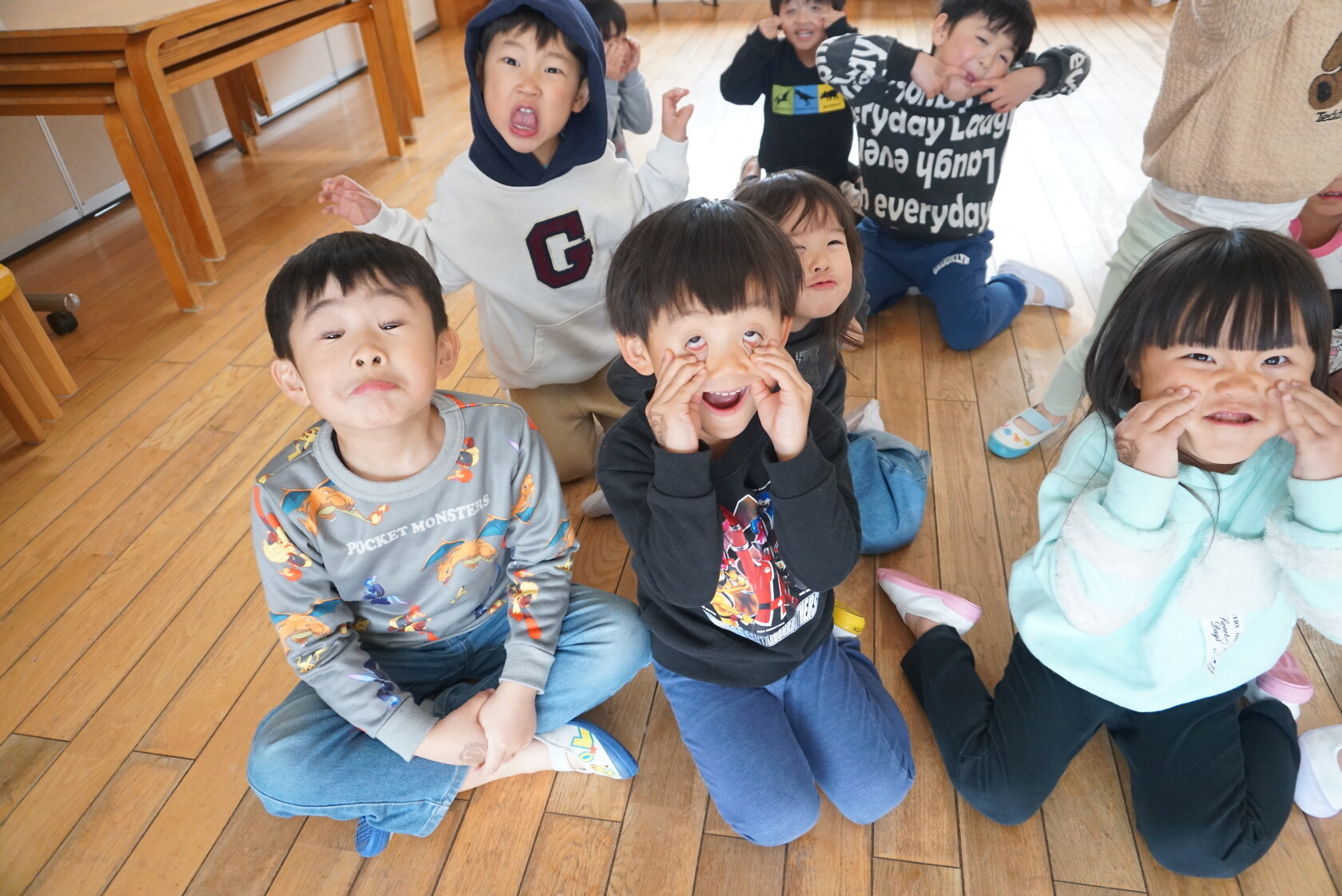 今日のできごと(すみれ) 公開済み: 2025年3月19日更新: 2025年8月7日 今日は雪と雨で寒いですが、すみれぐみのお部屋は賑やかでホットです!!! 爆弾ゲーム、あっちむいてホイゲーム、にらめっこ対決、色々なゲームをして盛り上がりました。 にらめっこで面白い顔を極めた子ども達の表情を今日はお届けします👍