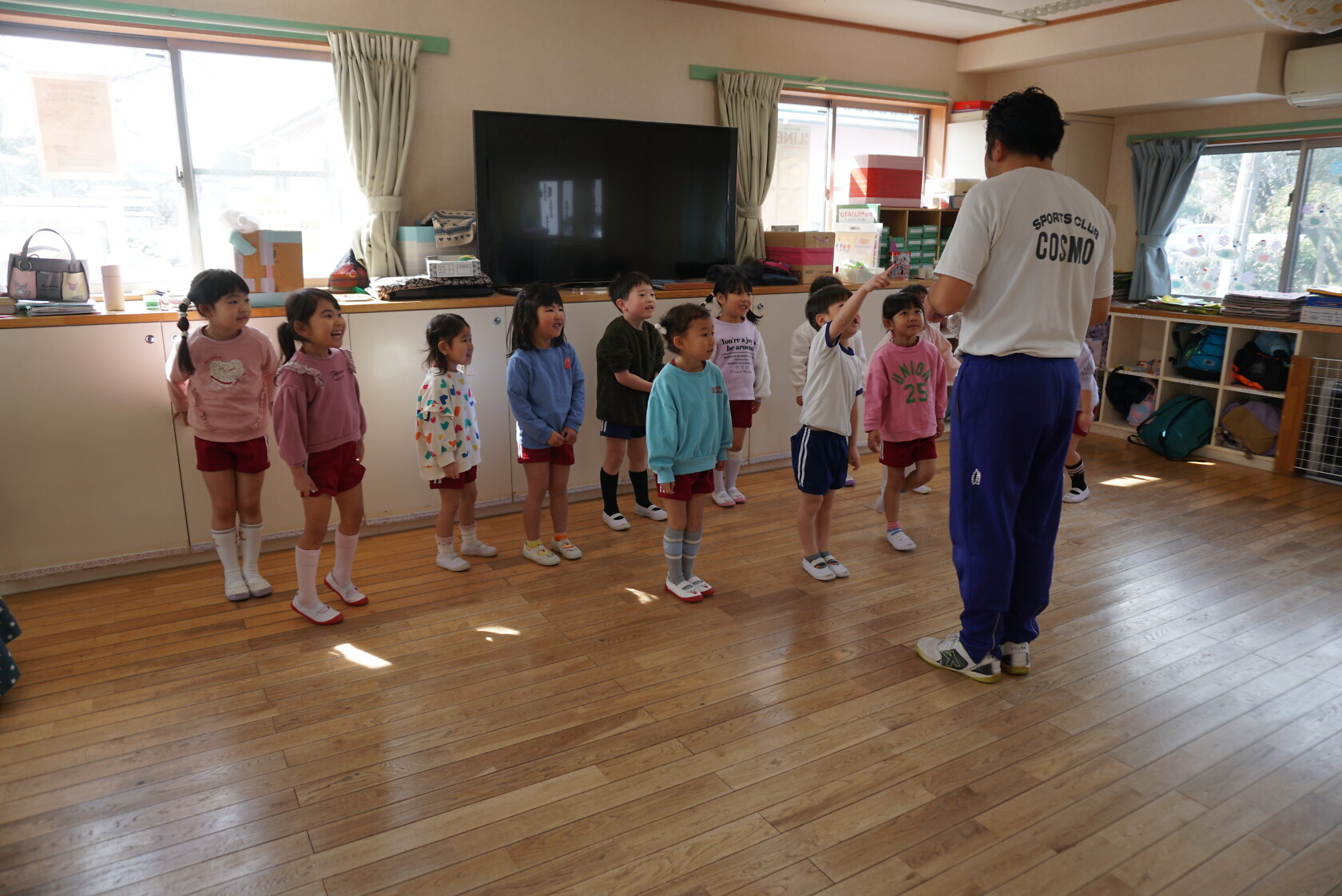 今日の体育指導は、園庭がぬかっていることもあり、急遽、室内で行いました🎵 ゆり組での体育指導は、今日とあと1回となり、元気いっぱい声を出して頑 […]